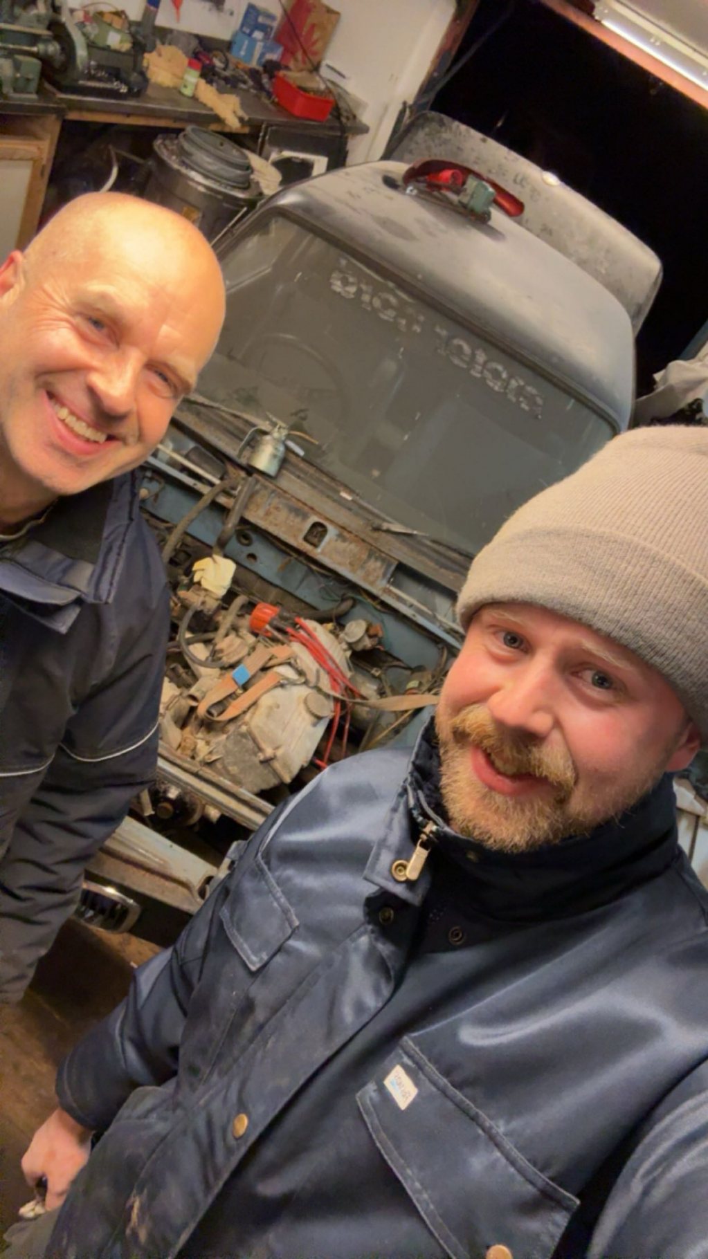 En kandidat , hämtar lite provisriskt avgasrör att sticka ut under garagedörren fixar soppadunk, nu går den att provatarta på riktigt och den verkar fungera oroväckande bra 👍