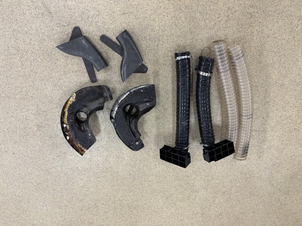 Bromskylningskit till BMW m2 f87 passar dom blåa bromsarna. Kommer från tyska lightweight i kolfiber. Finns två olika styrningar av luften antingen tar man luften under hasplåten med kolfiber luftintagen, eller så använder man dom 3d printade luftstyrningarna på bärarmen. Pris 1500kr ///Jonas Larsson 0705269310