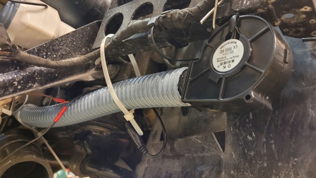 Men det kan ju ändå bli varmt där och jag hade ju köpt 2 st fläktar så den mindre fick bli kylning för ampere sensorn och den större för generatorn.