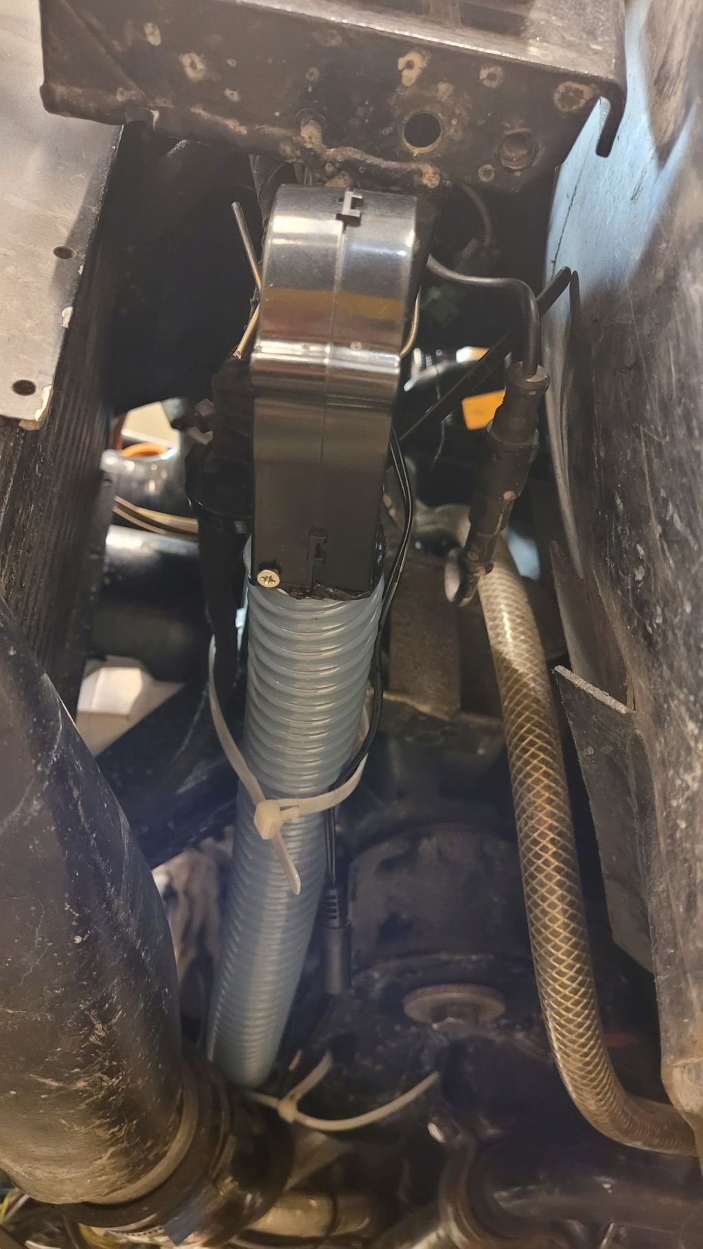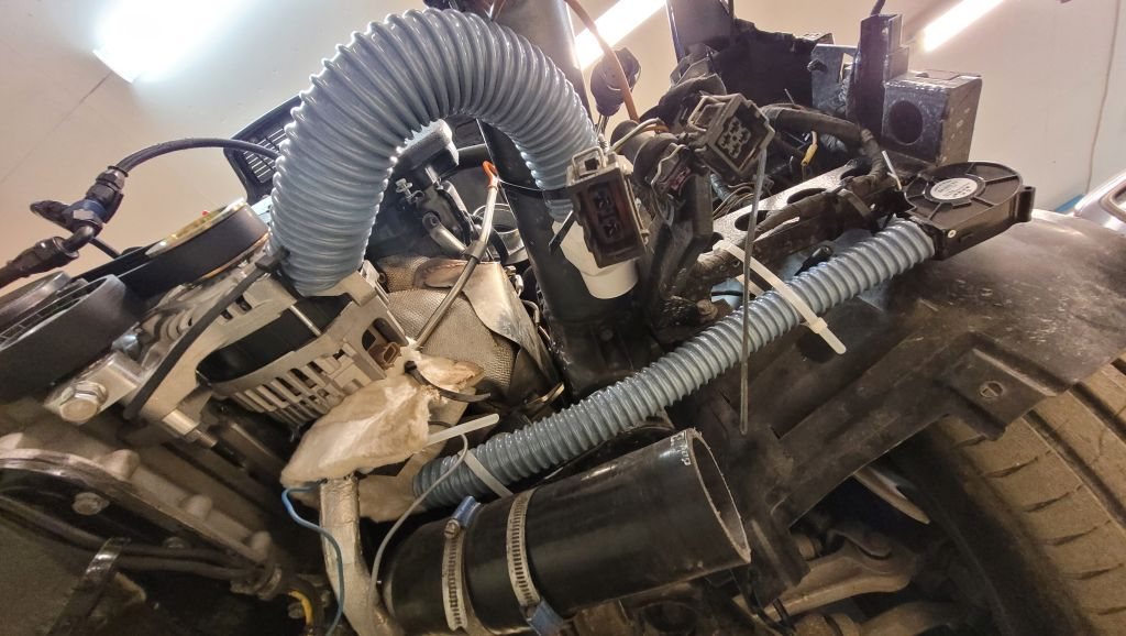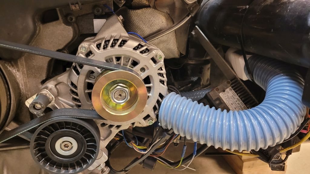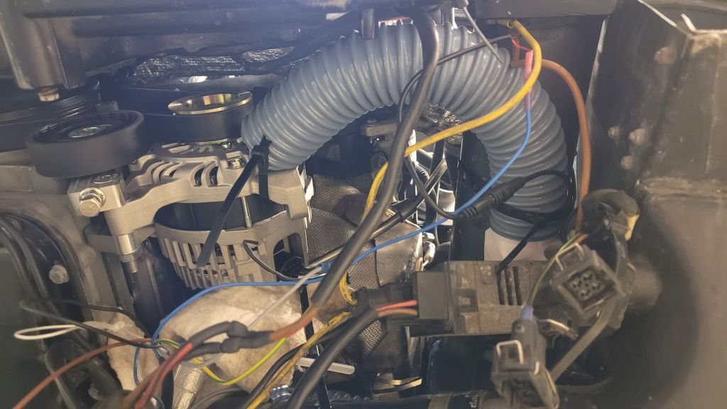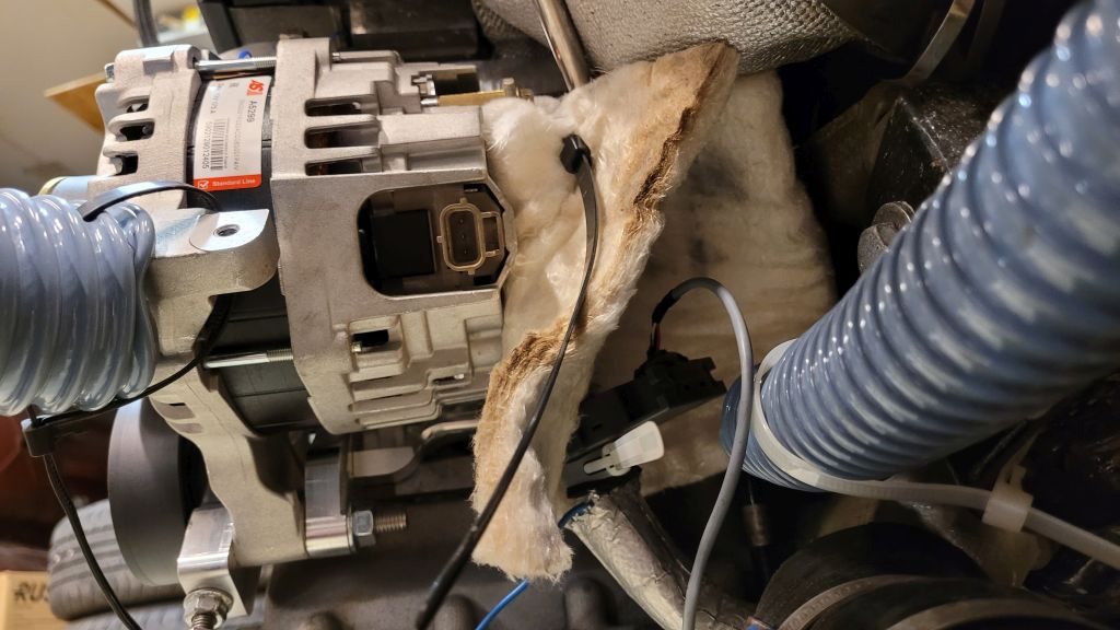 Själva ampere sensorn tålde inte så hög värme enligt infon och den hamnar ju bakom generatorn nära motor blocket och under grenröret så den fick en värme filt som skydd med öppning nedåt och utåt.