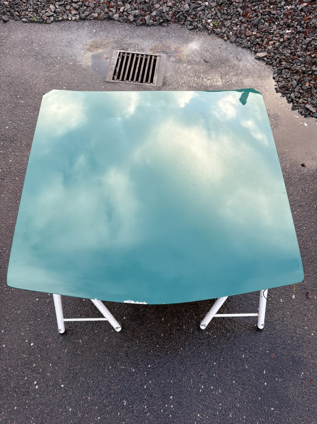 Buckel och rostfri men med lackskada i framkant från förvaring.