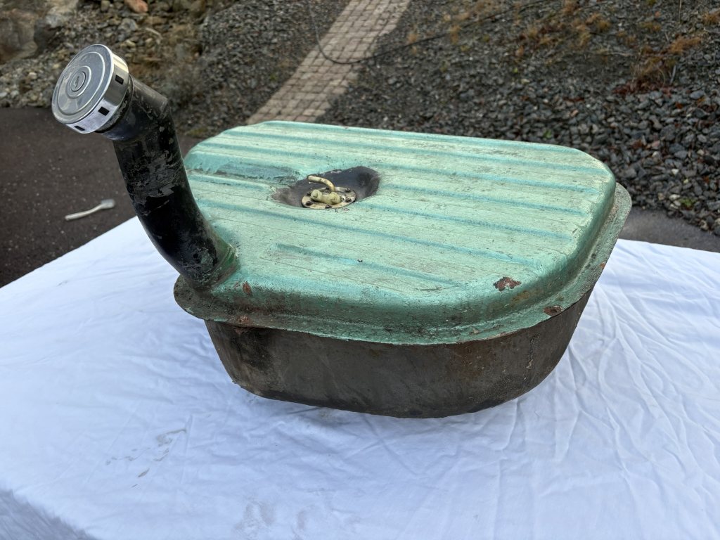 Originaltank med plasten på insidan samt skyddet för ledningar på ovansidan.