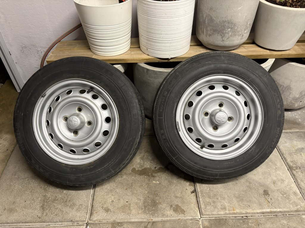 Säljer en uppsättning av 4st originalhjul inkl hjulkapslar från en Alfa Romeo GT 1600 Junior aka "Bertone Coupe". Skriv gärna i tråden om ni har frågor så missar jag inte det. Finns även massa annat så skriv om ni söker något. Paketpris: 5000kr eller högsta bud. Finns att hämta i Göteborg.