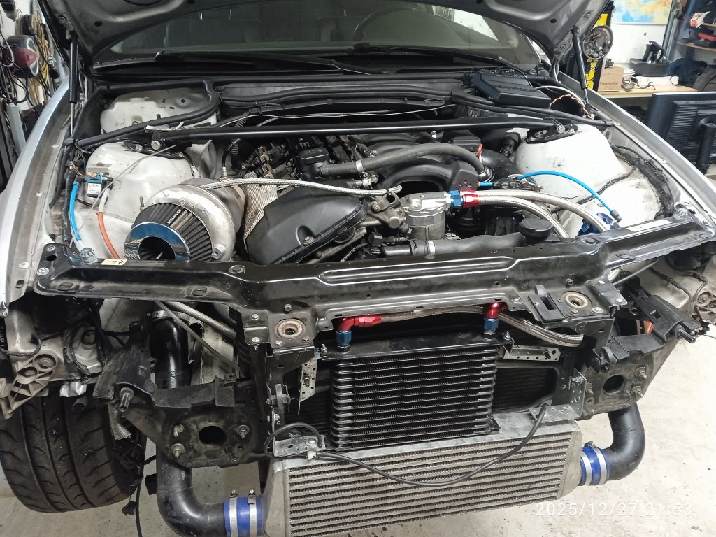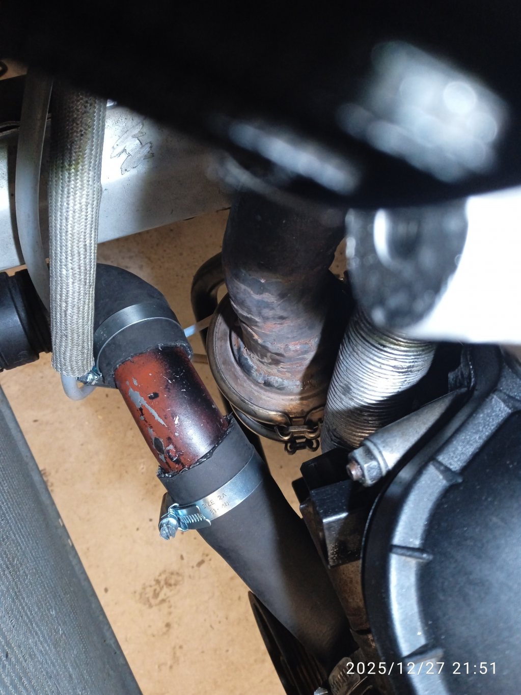 Lagade även nedre kylvattenslangen som brändes sist på bana. Satte istället ett bit stålrör närmast wastegaten.