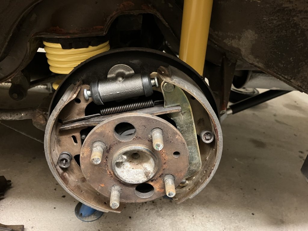 Nya cylindrar och bromsbackar kom hem igår och idag är det monterat och klart på ena sidan, tar andra sidan imorgon.
