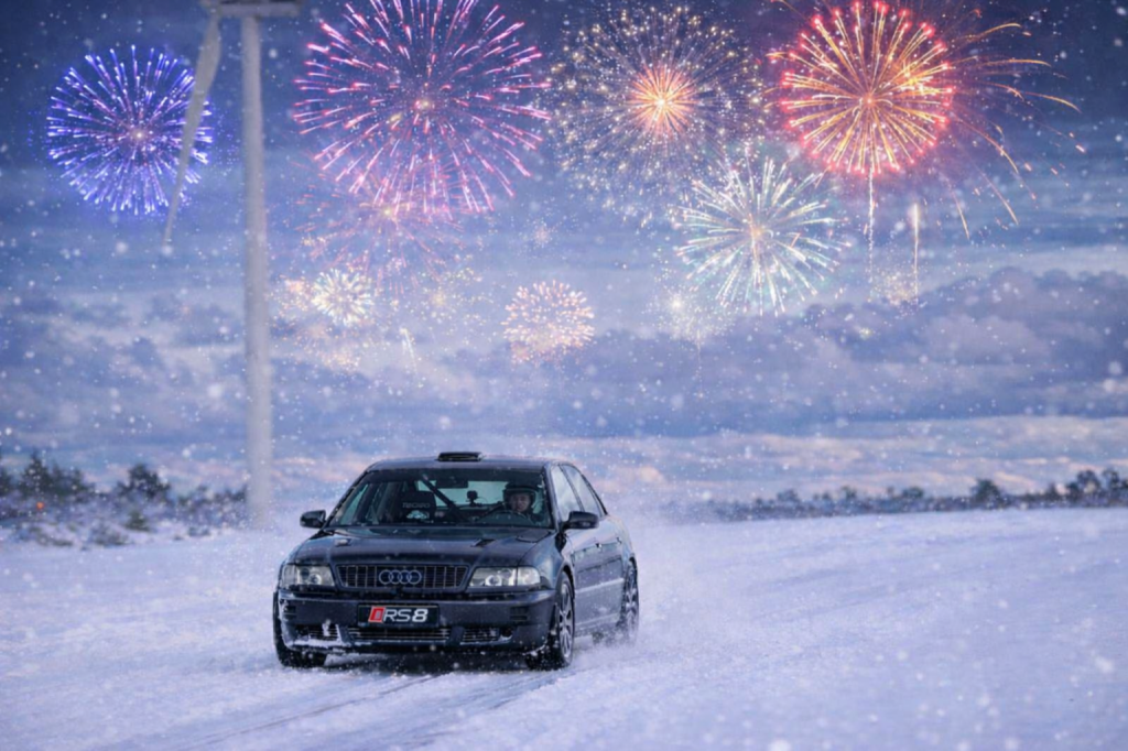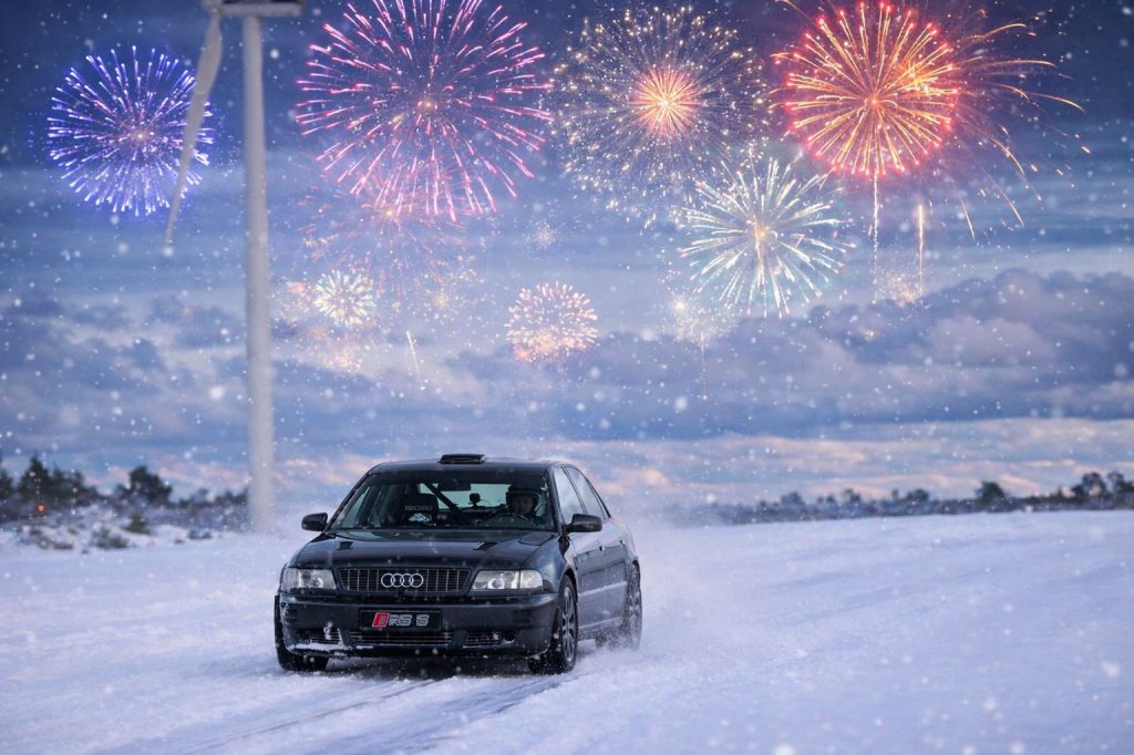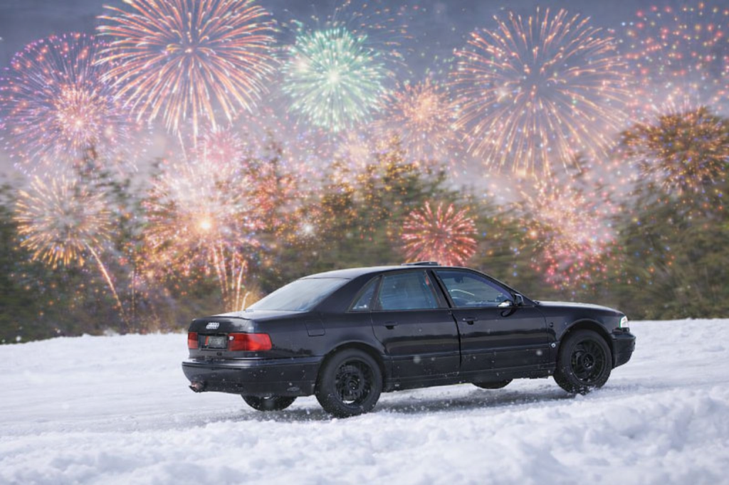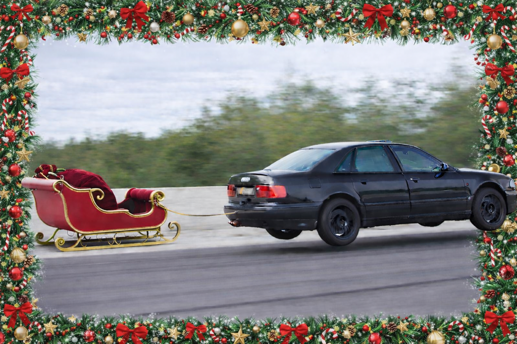 Försökte få AI har lägga in jultomtens släde bakom bilen men det blev lite fel