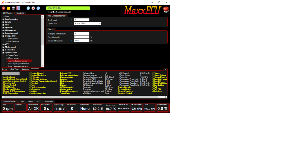 Började med att ange i maxxecu utväxlingen på nya diffen. Det används av lådan för beräkna massa grejor. Jag går från 2.93 till 3.46. Det lär ju påverka ordentligt. Tur det är 8 växlar i lådan...