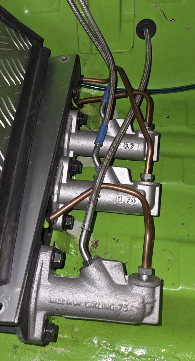 Nu ska jag bara fixa slangarna till cylindern vid pedalen och till avluftningen som jag tänkte dra in i kupen så man kan lufta på ett smidigt sätt. Jag har även införskaffat en snabbkoppling i Titan och 7075 från Speeding så att jag slipper koppla loss slangen vid pedalen när jag behöver lyfta ur motor och låda.