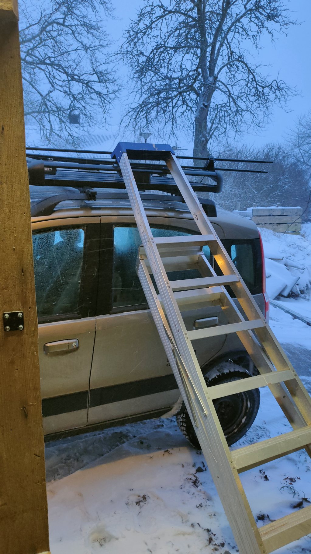 Grym arbetsbil detta! Toppen som arbetsplattform när man ska sätta snörasskydd på ladan.
