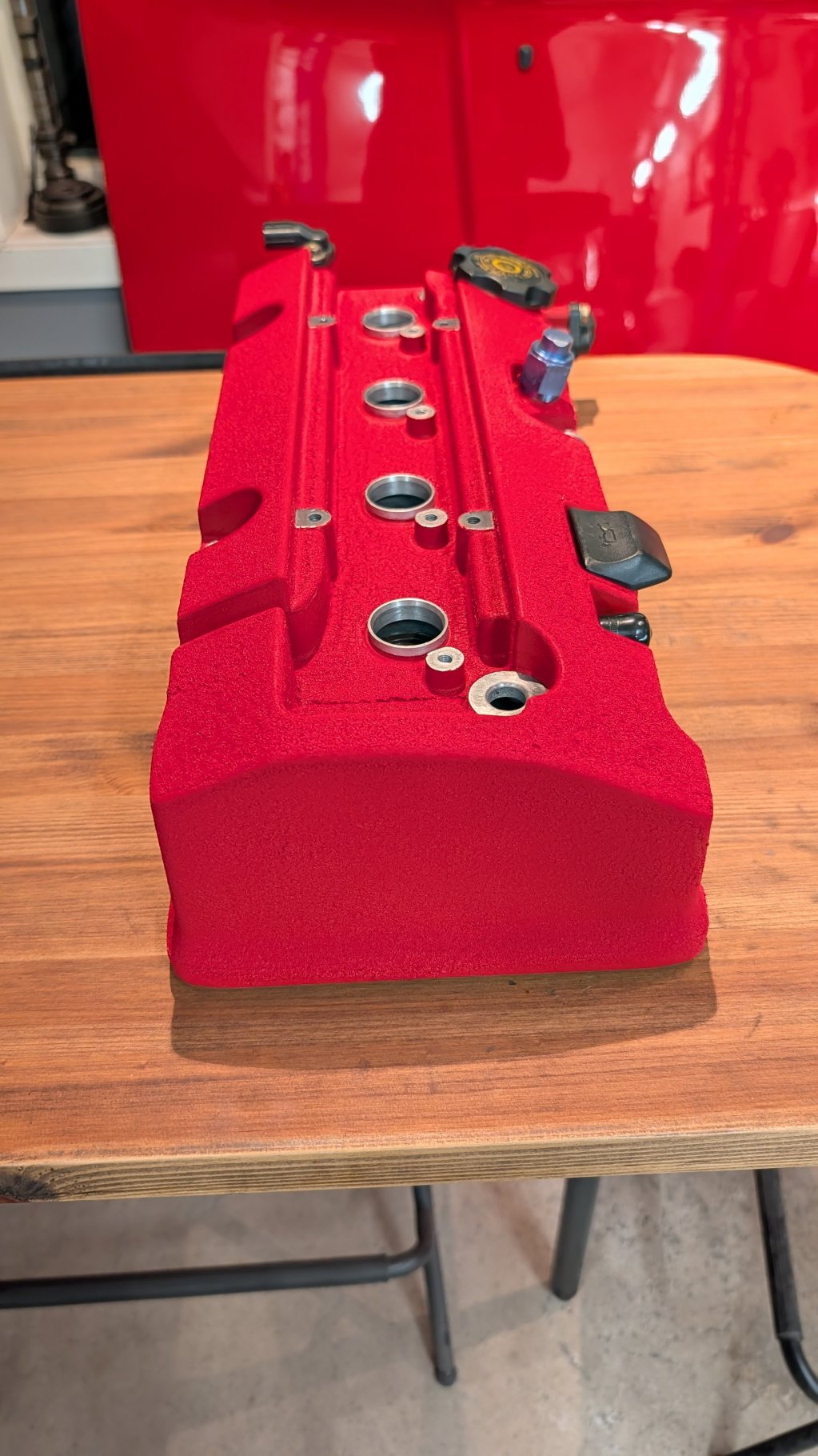 Som en annan Rejsian kommenterade tidigare så var inte valet av färg på ventilkåpan den snyggaste, blev till att måla denna med VHT wrinkle färg, satans färg att jobba med, fick göra om det då den första vändan såg ut som katt skit