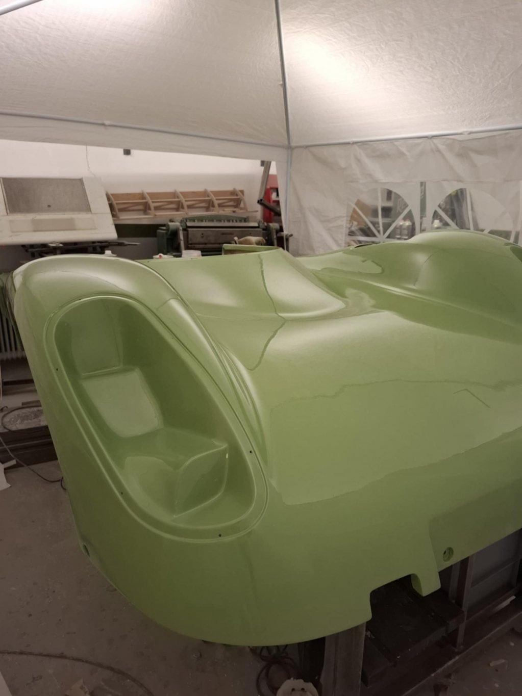 Förra vinterns projekt blev även denna vinterns projekt men nu börjar det åtminstone komma färg på karossen. Tanken var att måla vitt igen, men hur kul är det? Har alltid gillat RAL6011, en kulör som oftast återfanns på gamla tyska industrimaskiner, så den fick det bli.