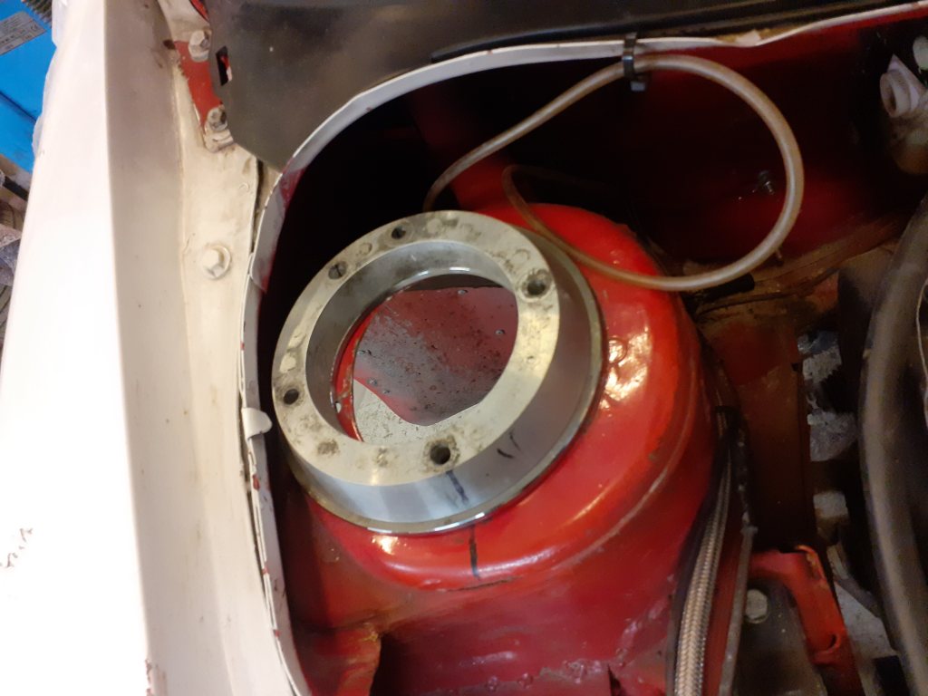 Så er jeg kommet videre, fronten er færdig rettet, forlygterne passer i, frontklap justeret ind. Hoodpins skiftet og justeret. Vinduesviskere monteret. Underdelen af fronten malet sort da man kan se den inde i den nye kofanger. Har også fået mine forstærkningsplader fra smeden. de er 6 mm så skal der ligge en på over og underside af tårnet. Sidste år blev toppen af det ene tårn bukket da vi rampe et hul, jeg rykker dem også lidt længere ud da jeg korer med for meget camber. Mine nye stoddæmpere er stoppet i tolden men burde komme i næste uge, så kan jeg snart få den ned på hjul igen. God weekend