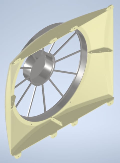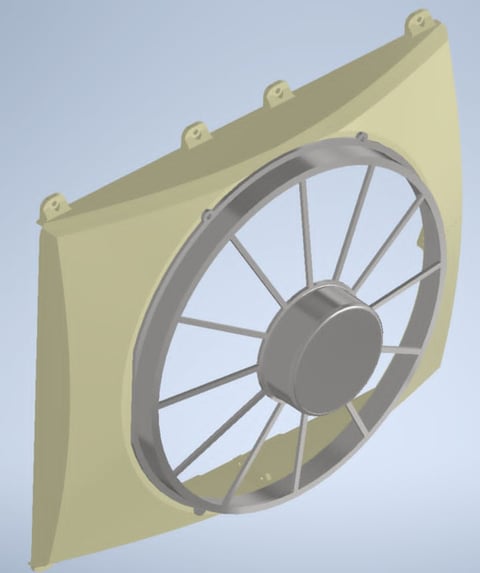 Nu har jag tänkt att jag skulle få till en snygg fläktkåpa så jag ritade upp en i cadden som jag anpassade för min kylare och den stora SPAL fläkten.