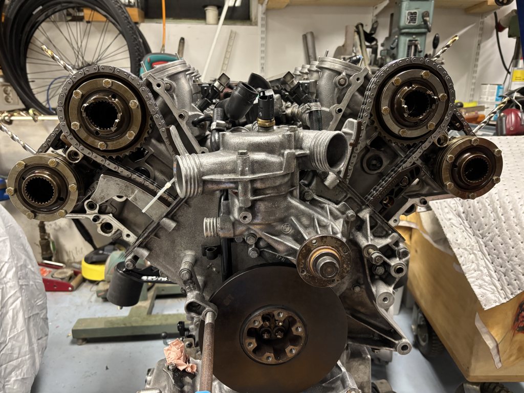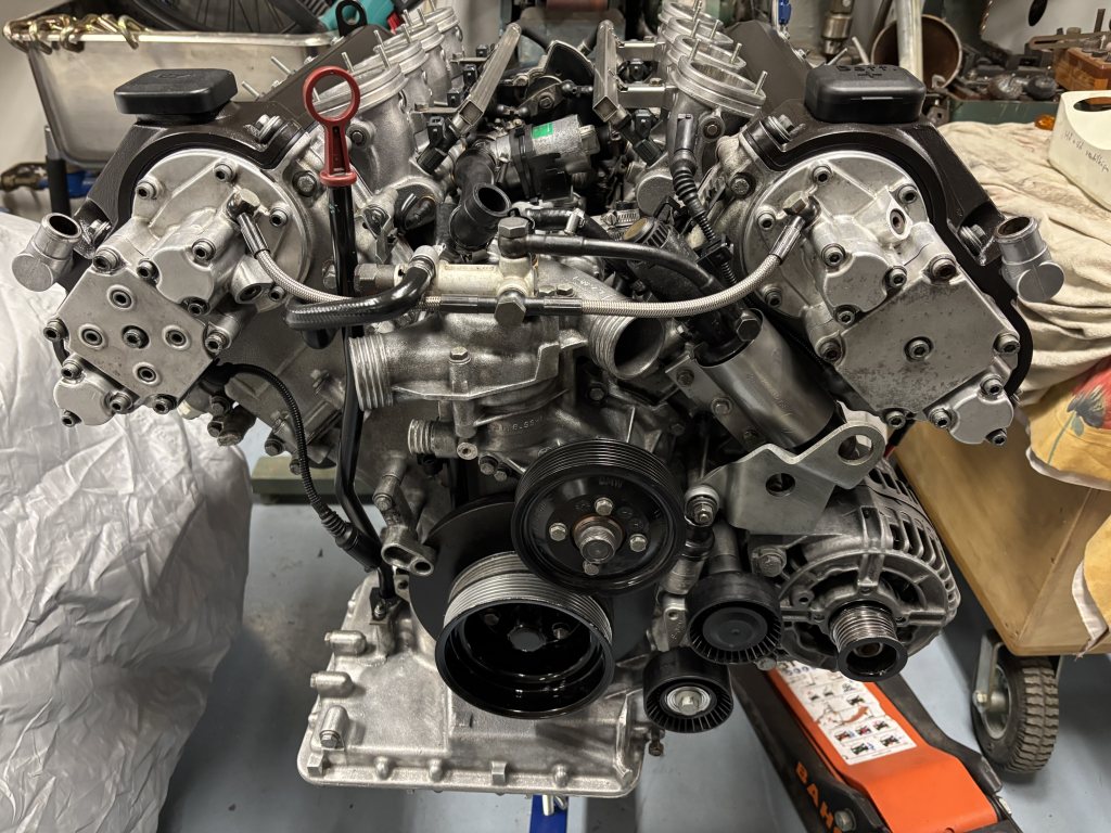 Har nu mätt hur mycket kolven sticker upp och med original tjockleken på topplockspackningen (1,74) så blir det lite tight. Kolven sticker upp ca 0,9. Vågar inte "chansa" utan går upp +0,3 som den tjockare packningen är. Har satt dit oljetråg med oljepump och bröstkåpan med vattenpump i väntan på de nya pckningarna.