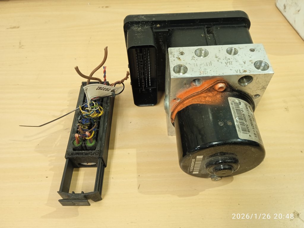 Idag kom en ABS pump som jag tror skall vara en MK60E1, den är från en E90 320d 2008. Detta exemplaret hade med orginalkontakstycket som jag har tänkt pinna om till min bil.