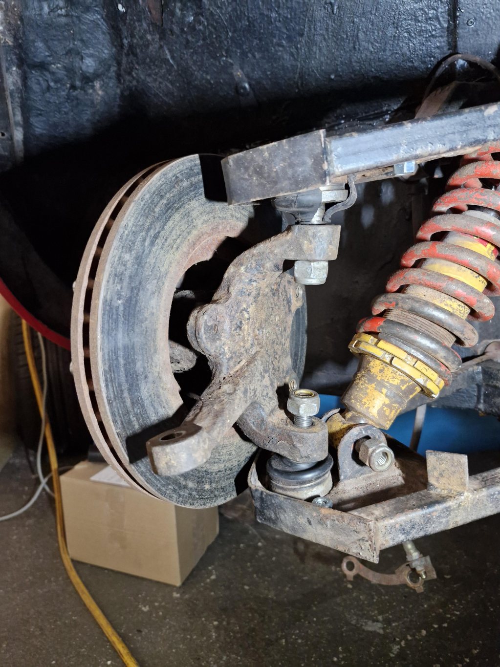 Man har svetsat om inre styrleden så det är nog kombo med Granada då det är ventilerade skivor. Mätt och kommit fram till att Volvo 240 är väldigt nära så idag beställt en beg från bilskrot i Luleå. Får sedan be mek verkstad matcha ihop så splines passar mot Megane rattaxeln. Så nu finns en Megane 3 styrväxel över om någon behöver.