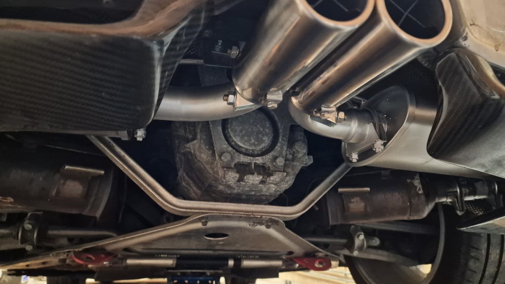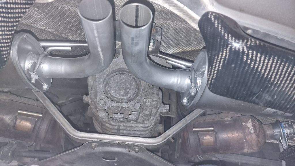 Lite vanhelgande måhända, leverantör blev biltema. Fick massera rören lite för att få det att passa. Resultatet blev dock bra och det är huvudsaken. Passade även på att fixa några trasiga fästen till plastkåpor på underredet. |