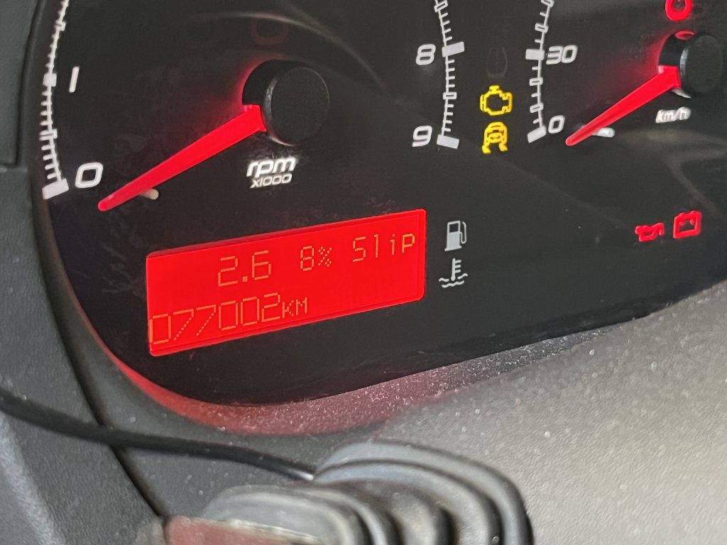 Ja just det, bilen har ju justerbar Traction Control, men hur jag än har vridit på ratten har jag inte märkt nån skillnad... det var något om nån knapp med... Då ska vi se... Tändning på - check Hålla inne knappen - check Ohh, där tändes en diod på knappen och vips så kom ett meddelande fram i instrumentet