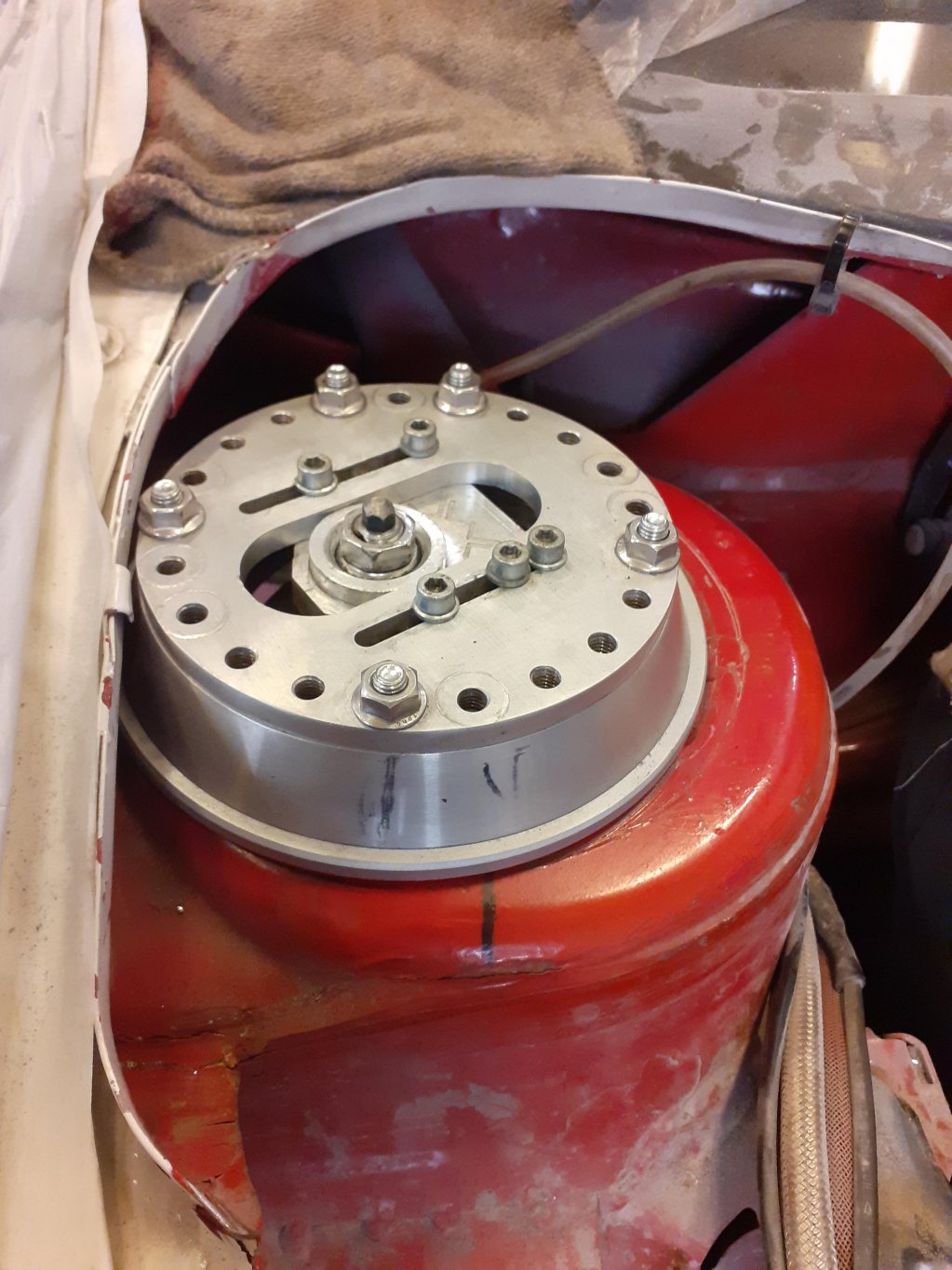 Kold dag på værkstedet idag, startede med at lobe tor for gas til varmekanonen, efter en halv times tid gik strommen til kompressor og varmepumpe, jeg kunne ikke tænde det igen uden at den slog fra med det samme. Så havde jeg kun min lille 2kw varmeblæser til 100m2 værksted. Nå men jeg fik lavet mine forstærkninger i begge tårne, kraftige 6mm skiver på begge sider, med bolte igennem. Også rykket lidt over 1 cm ud af så den kan få lidt mindre camber. Fik kortet slangerne til oliekoleren, efter 2 forsog så passede det lækkert.