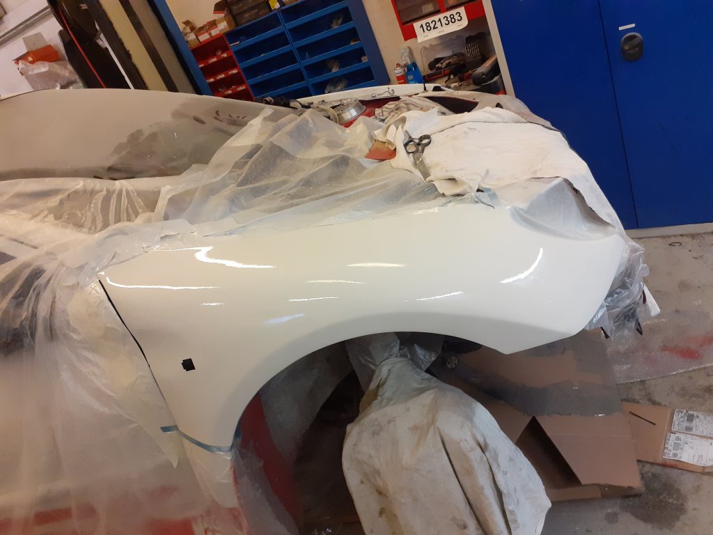 Så blev der unboxet (hedder det vist i dag) så jeg kunne testmontere, den bagerste passer overraskende godt og ser pæn ud, efter jeg lavede hul til trækojet passede den sådan 95% Den forreste er lidt en anden sag, den skal passe udenpå den originale forstærkning men kunne ikke komme ind på plads, efter lidt justering/slibning så kom den næsten på plads, den kræver dog lige et par timer mere for den er tilpasset færdig, jeg kunne næsten tvinge den på plads med strips og den ser ok ud, men det bliver nok mere sådan race finish hvor den ser ok ud på 5 mtr afstand