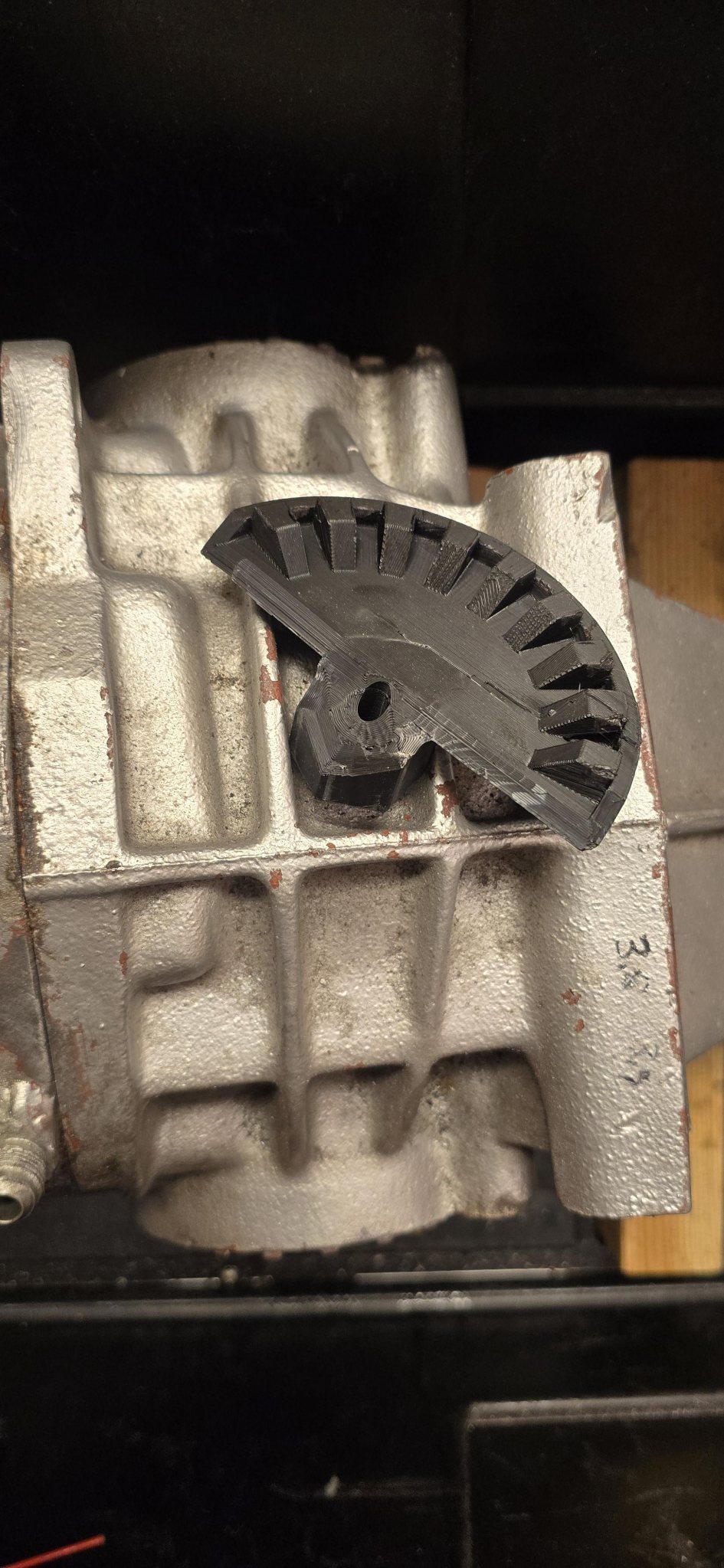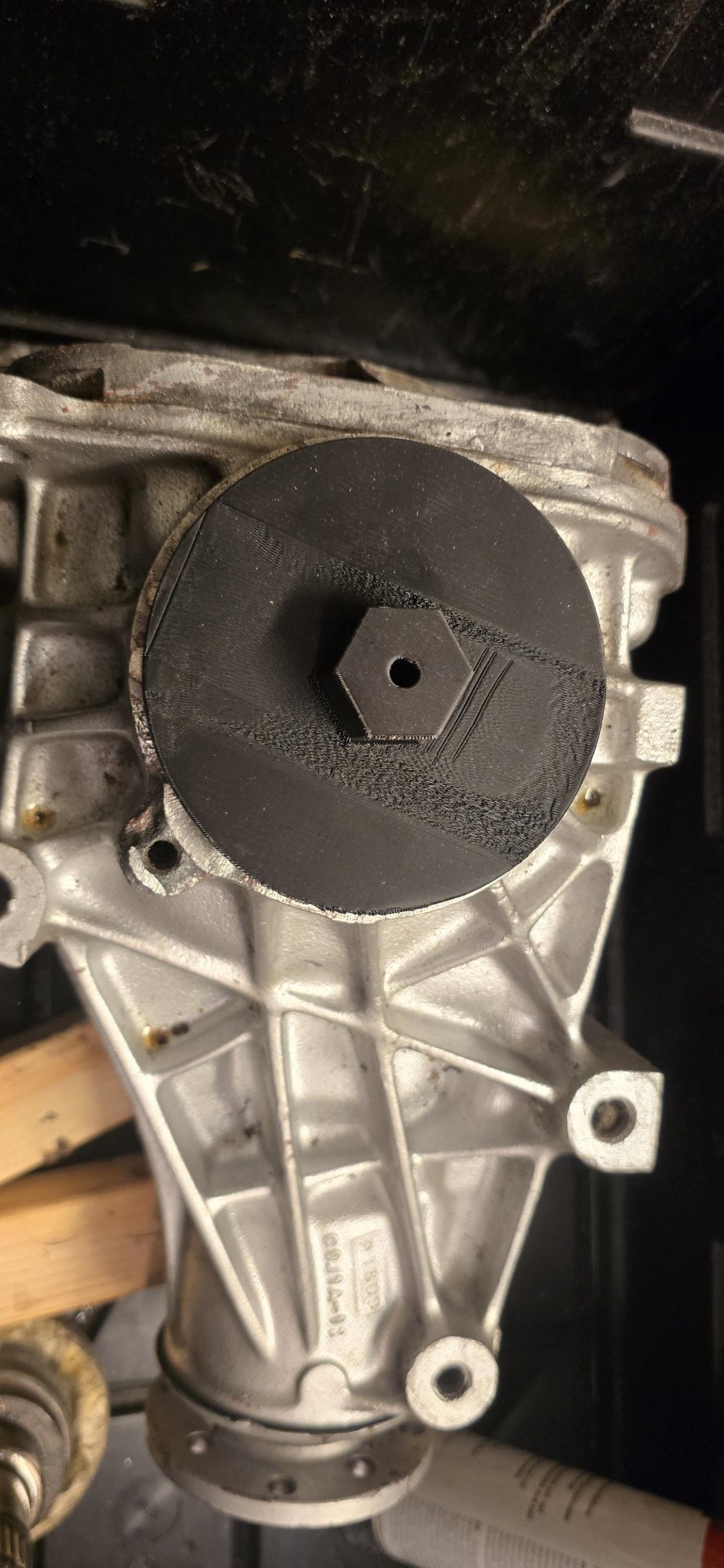 Allt är ett lärande, så när jag började göra ett "verktyg" så var det mest för att se hur lätt det skulle gå att göra i CAD. Första versionen skrevs ut snabbt för att testa om dimensionerna var rätt, naturligtvis var jag tvungen att testa och den skjuvades av ganska lätt (17mm hylsa). Version 2 har 27mm hylsfattning (största jag hittade på 5 sekunder i garaget, borde tittat i lådan under bänken efter större) och fick "sidan" som går ner för att styra bättre. Skrev ut i 45 graders vinkel, och att den bara består av "väggar". Håller för förvånansvärt mycket kraft. _________________ Mvh /Marcus I garaget: Påffe 944 & Martini Seven |