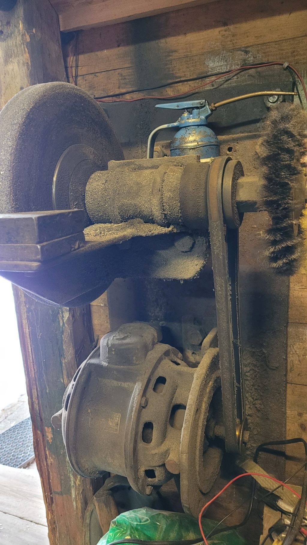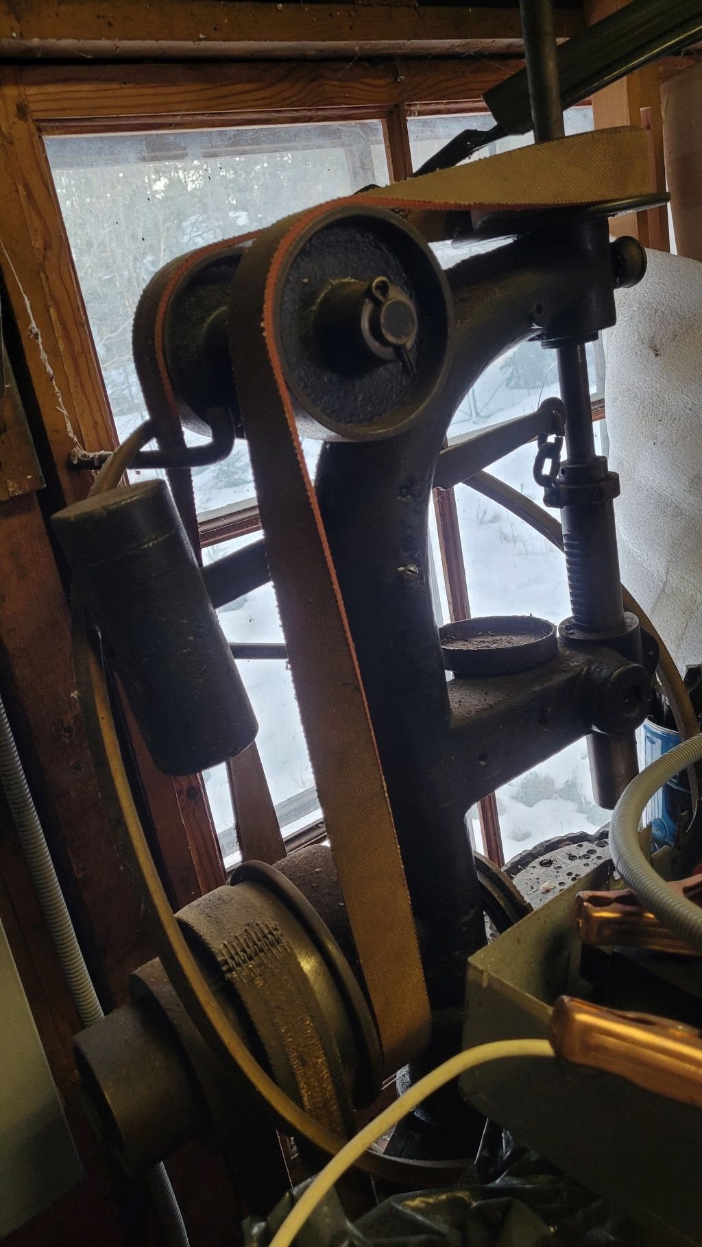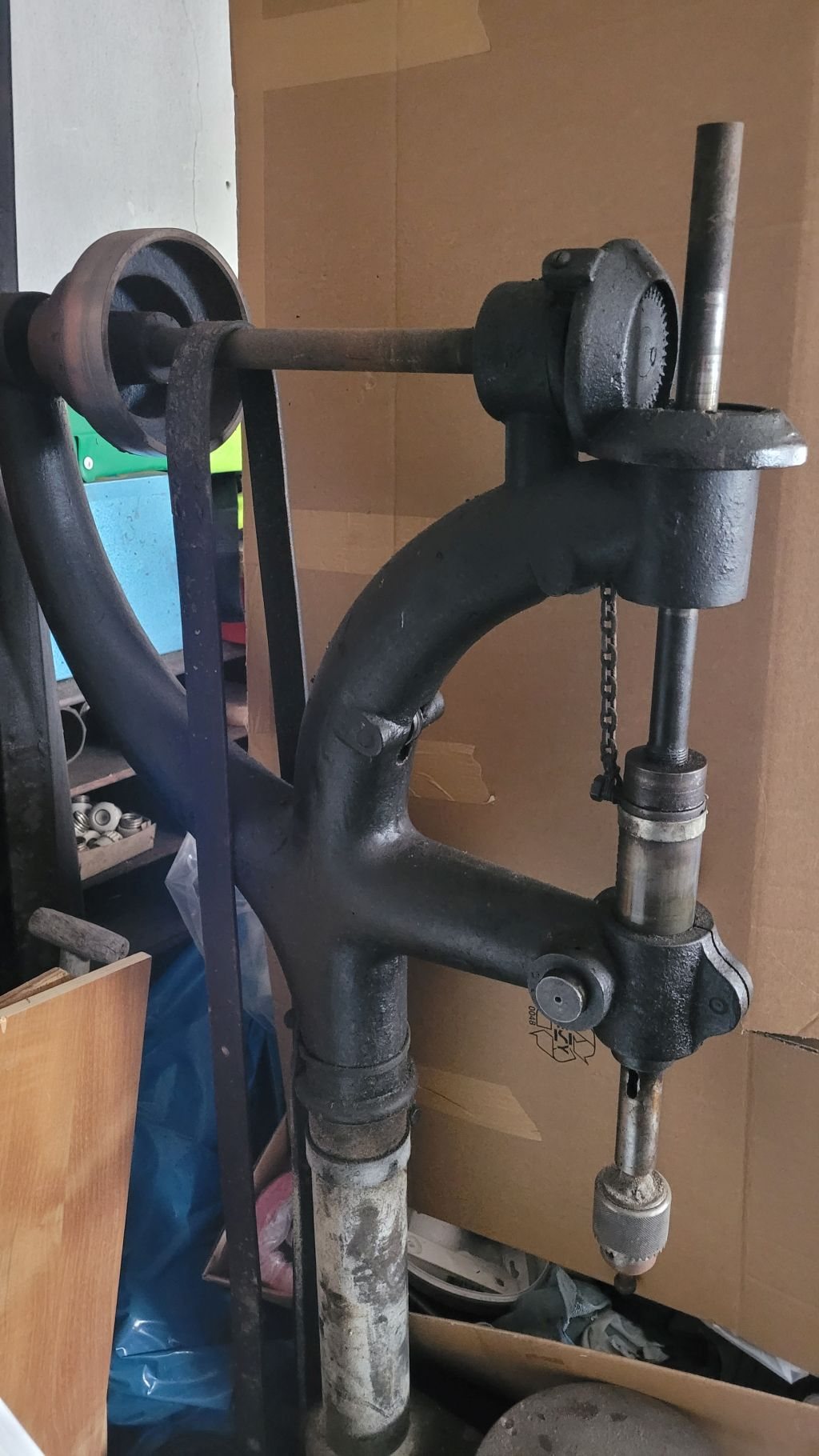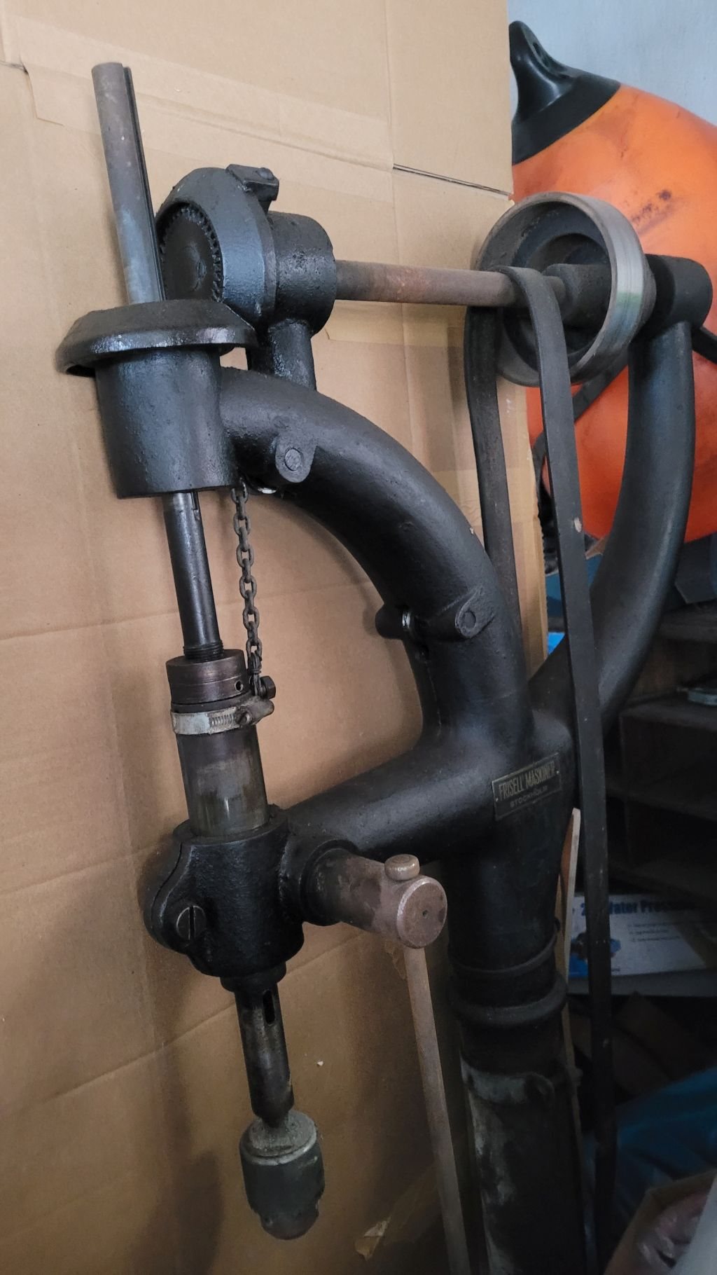 B.A.Hjorth&Co (idag känt som Bahco) Borren är nog inte använd på minst 50år men remmar och det mesta sitter kvar, se bilder. Klicka för större bilder!