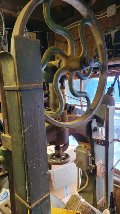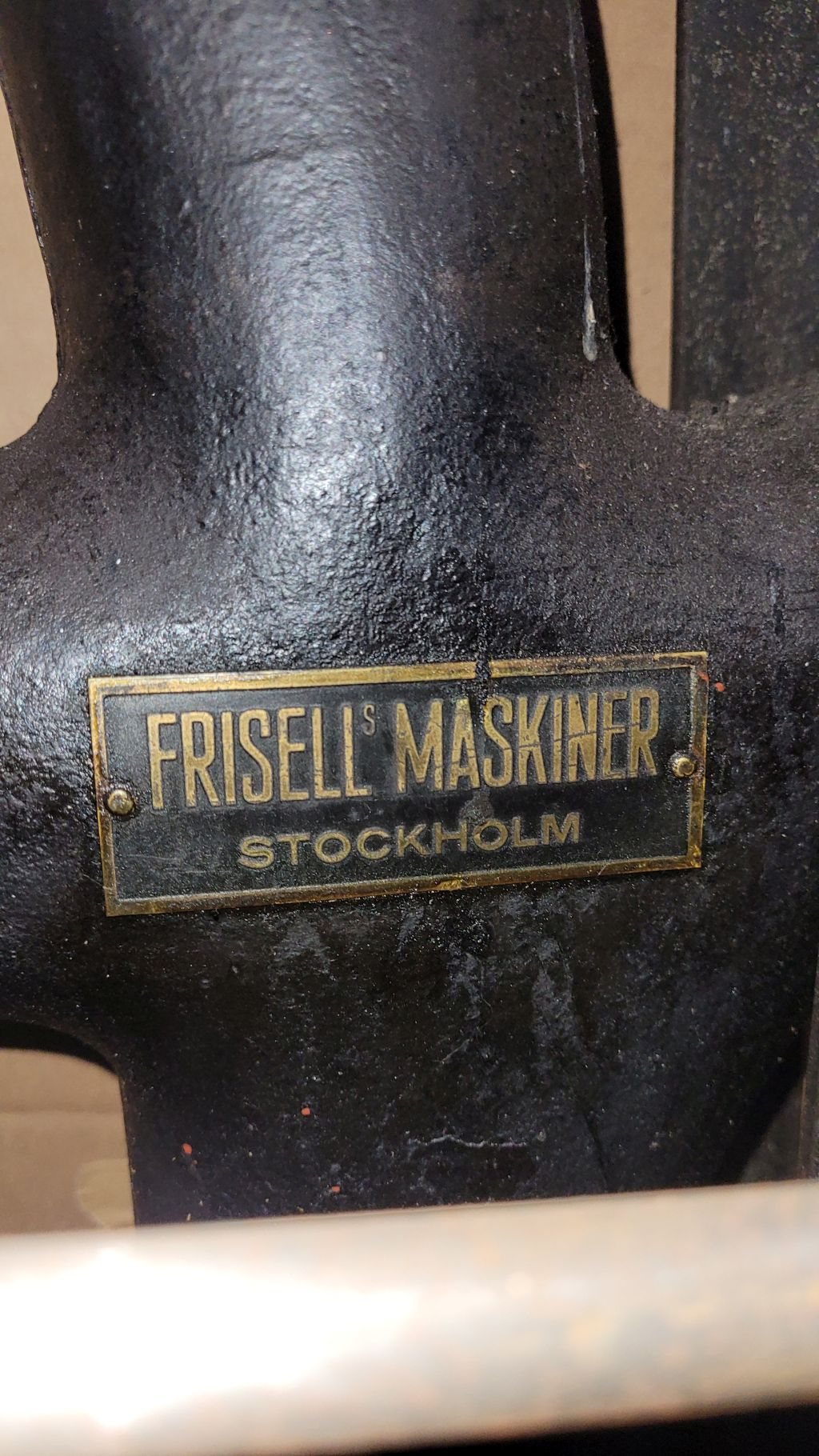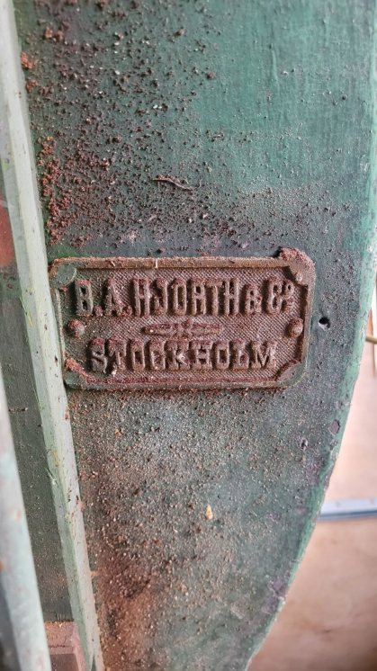 Läste precis tråden och såg ovan den gamla pelarborrmaskinen som jag tyckte mig känna igen så blev ett besök i gamla snickeriet som blivit förvaring så svårt att komma åt dom gamla maskinerna, men kunde tyvärr inte hitta någon skylt på borren men däremot på bandsågen.