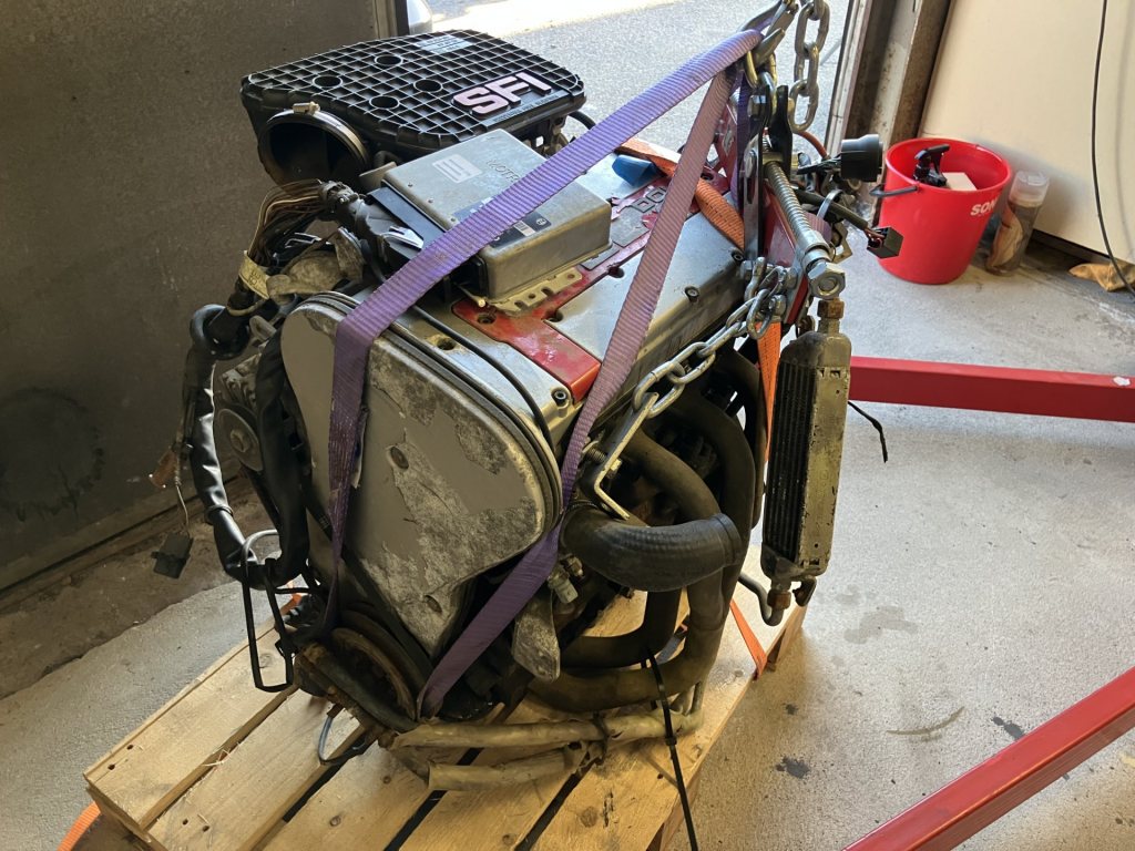 En C20XE från en krockad Kadett GSi -89, motorn var tänkt att hamna i en folkracebil men han som sålde motorn hade bestämt sig för Saabmotor istället så det tackar jag för