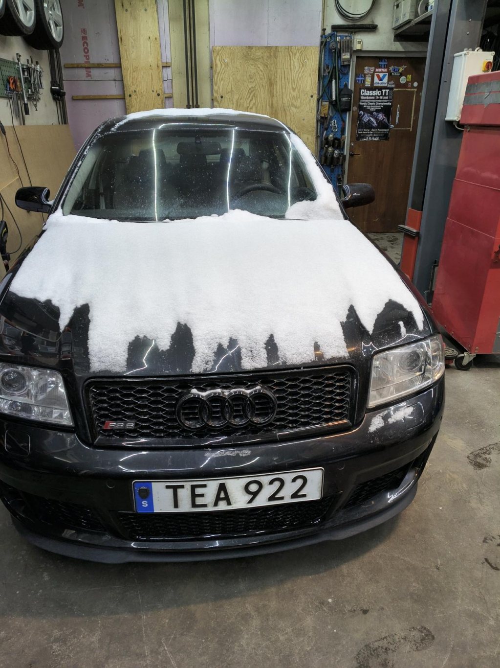 A.I ??? Nej, riktig snö. Pappa ville låna sitt garage jag hyr så bilen fick vara ute en vecka. Och då kunde man även prova att bilen fungerar runt kvarteret och blåsa bort lite snö. Men det hindrar ju inte att man bygger vidare på lådan under tiden.