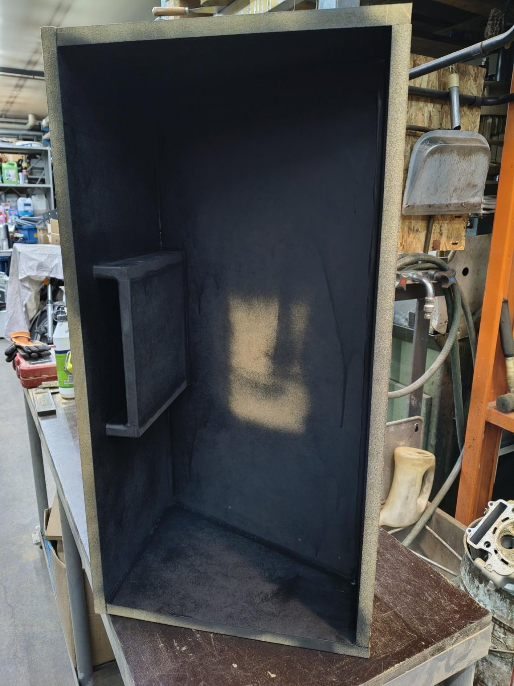 Insidan målad. Finns lite flammighet etc men vill bara inte det är några ljusa delar som syns genom port eller plexiglas senare.