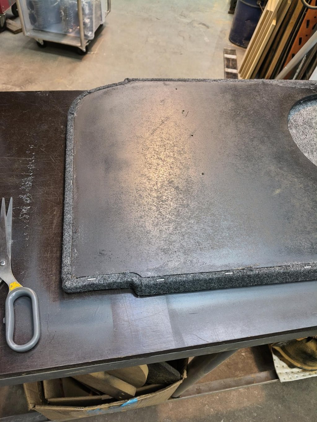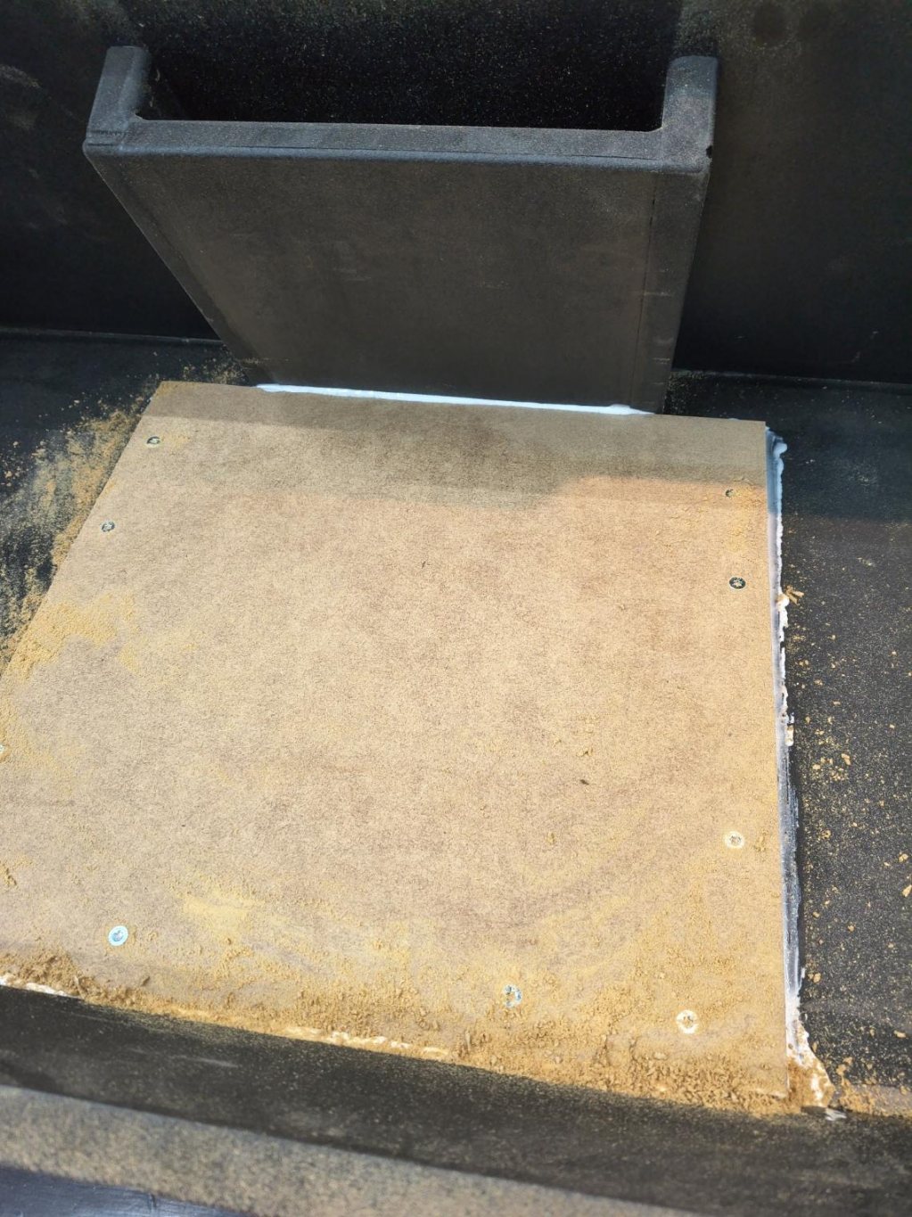Plattan mot ryggstöd klädd, säkrade med att skjuta fast clips att hålla i mattan. Tror inte det egentligt hade behövts, men under torkning lär det inte skada.