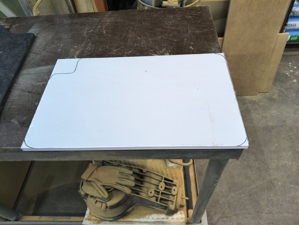 Skruvat dit baffelskivan, tagit upp hål för porten och ritat ut var basen kommer ungefär.