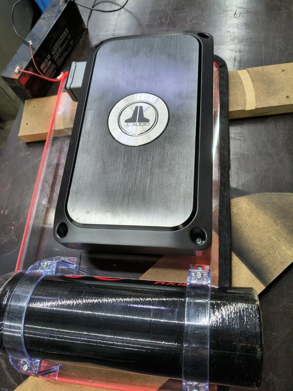 Kanske inte stora steg men varje liten del är en bit närmare fungerande bil. Slutstegsplattan nedställd på sin plats, inkopplad belysning.