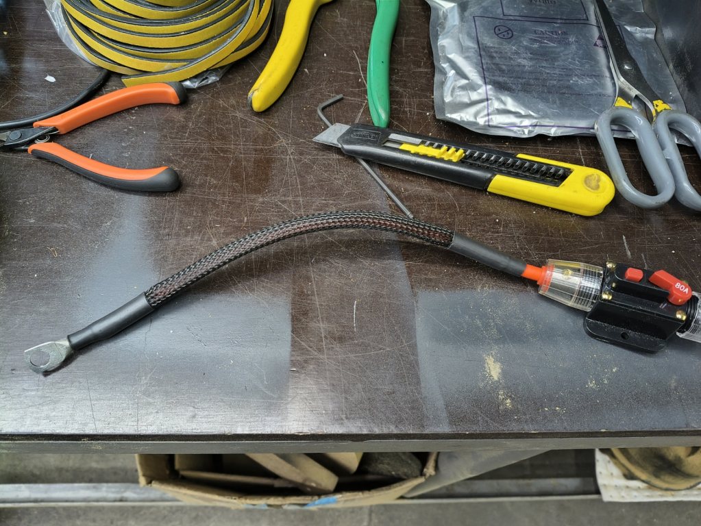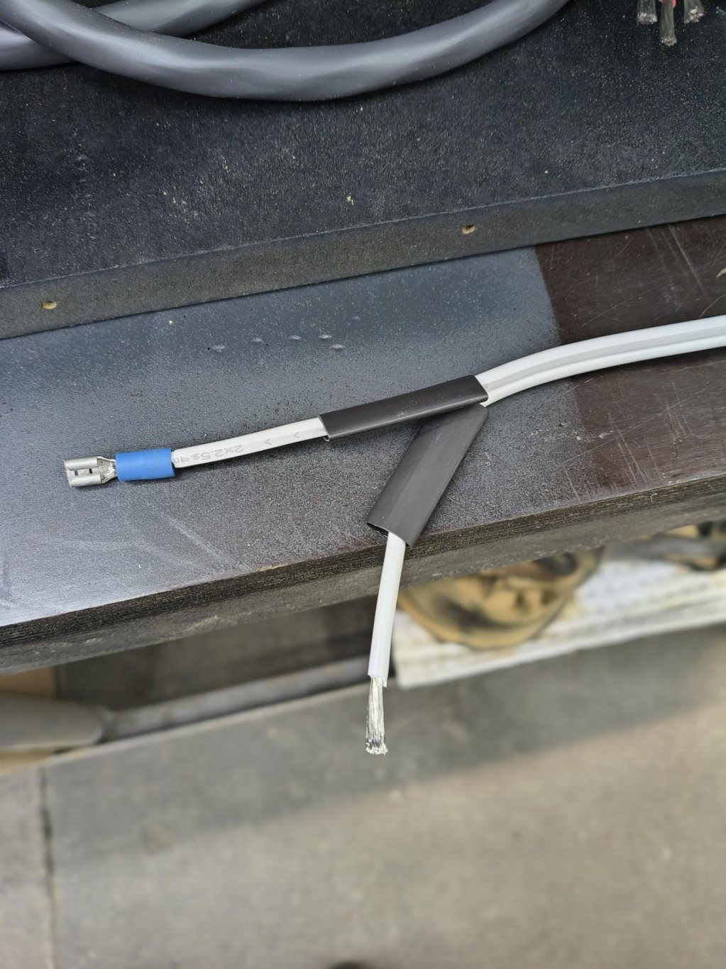 Men nu känns det som det går lite framåt. Tror allting utom till lösa kontaktstycken är gjort nu, så plankan borde snart kunna monteras på plats. Smältlimmat fast ledlisten, säkrat med tesa vävtejp. Kanske inte behöver skyddstrumpa på minuskabel men det ser ju bättre ut
