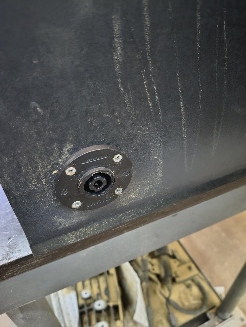 Saknar några skruvar för att fästa bassteget på baksidan, men det passar i alla fall. Och syns typ inte. Denna gång kommer inte skruven som håller hela fästplattan mitt under en kontakt in i steget utan mellan kontakter. Små förbättringar