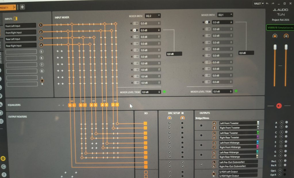 Och så har jag börjat konfigurera dsp/slutsteg innan jag kabeltattar det