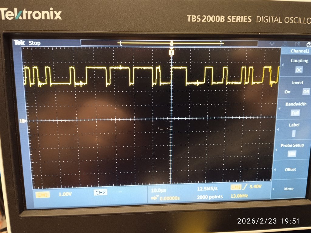 Pulståget från DSC sensorn. Det är alltså massa ettor och nollar i följd efter varandra. 500 000 per sekund. = 500kbits.
