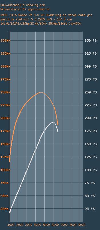 250nm vid 3000rpm låter inte rätt... kanske på 2.0 turbo sexan? Ovan ska vara en graf för en std motor. Dock inte från en bromsning utan genererad från fabriksuppgifter.