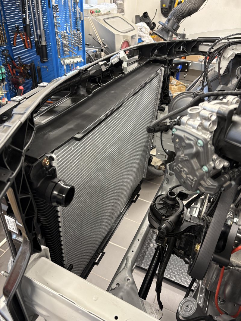 Bendt bil hjälpte mig med plastramen runt kylarna från en G20 så allt kunde monteras på ett bra sätt. Jag visste att cellpaketen skulle passa mellan rambenen men resten var en ren chansning. Efter lite trixande och två nya fästen så är det så bra att G20 kylare inkl plastram passar i en E8X/9X front Nästa steg är att mäta upp och beställa två oljekylare, en till motorn och en till växellådan samt att montera tillbaks kylfläkt på insidan och dra oljeslangar. Vatten anslutningarna får jag klura vidare på, inte helt självklart än eftersom jag tagit bort en del grejer längst vägen inklusive "heat management modulen".