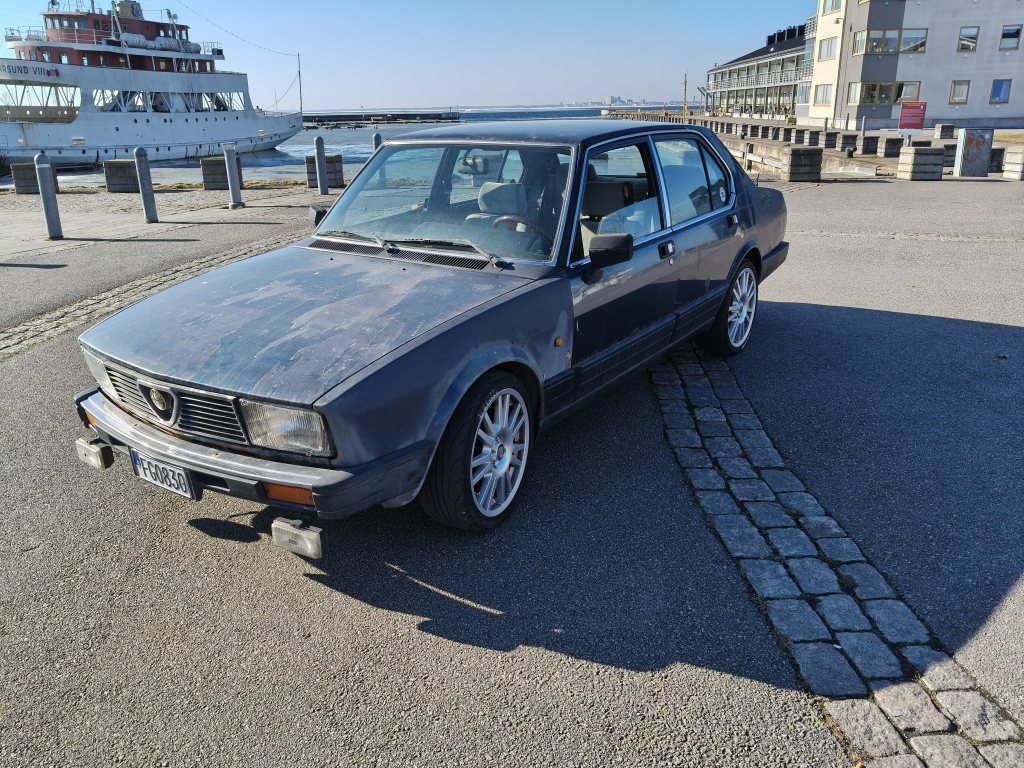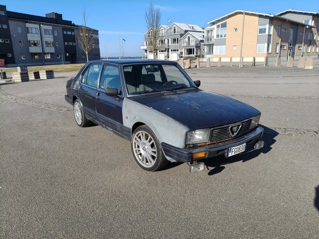 Snyggt patinerad Alfetta säljes! Bilen har fått hela chassit renoverat av tidigare ägare med bla nya dämpare, gtv6 stavar, renoverade bromsok, nytt original avgas, nytt batteri mm. Det sitter 17" Cromodora fälgar med skapliga NS2r däck på. Lite slitna 14" Ronal A1or med nya däck och en uppsättning spruckna vinterdäck medföljer. Bilen är besiktigad till 270706. Kända fel: varvräknaren funkar inte, kupéfläkten går bara på högsta, 2ans växel skrapar såklart. Står på Öland nära bron och blir din för 25000:-!