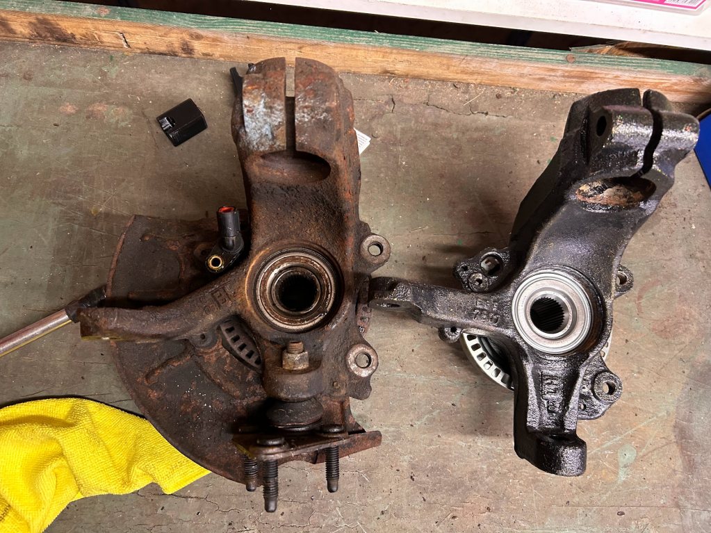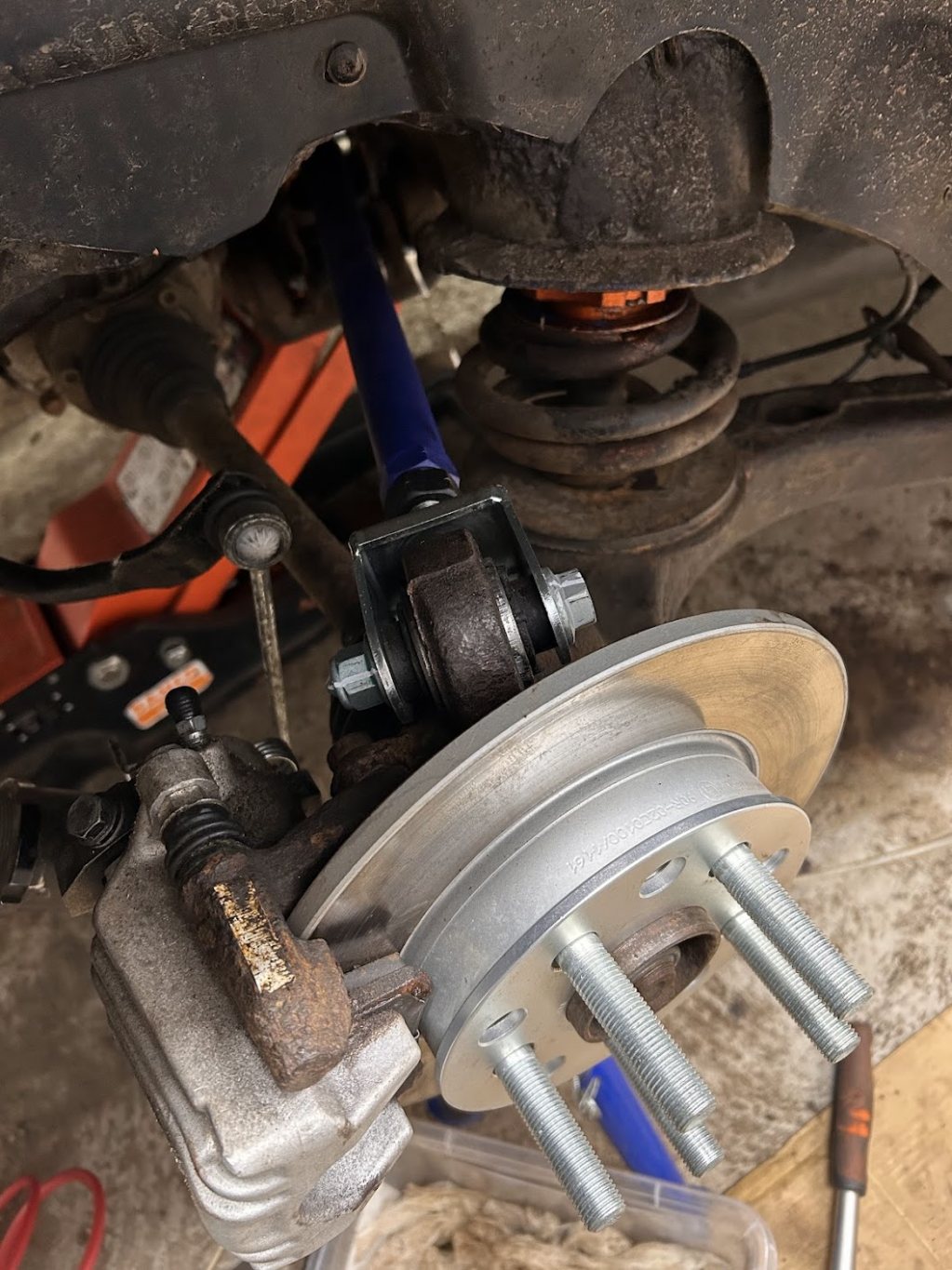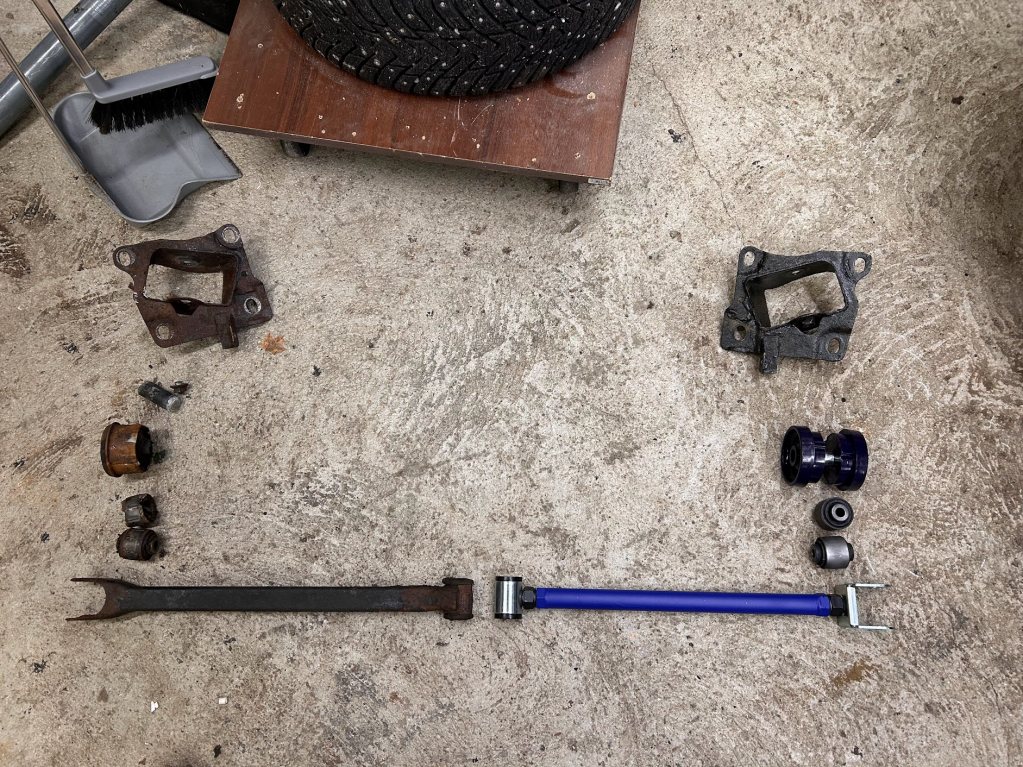 Fram Styrleder inre/yttre höger/vänster Monterat S3/TTS/R32 spindlar med nya lager och nav Hel stålomspunna bromsslangar runtom EBC Blustuff belägg Bak Bytt kulleder i naven bak x4 Monterat Ställbara Camberstag/caster Polybussning i trailingarmsen Gjorde ett nytt bromsrör då gamla gick av Designade och printade en egen TPu bussning till Audi TT krängare bak som är 16mm vs 14mm original. och en hel del mer är gjort och det mesta i bultar/muttrar etc bytta. Kvar nu efter dra allt i framvagnen samt lufta bromsarna. Väntar på maskin för att provtrycka kylsystemet då jag inte hittar läckaget som gäckade mig i höstas.