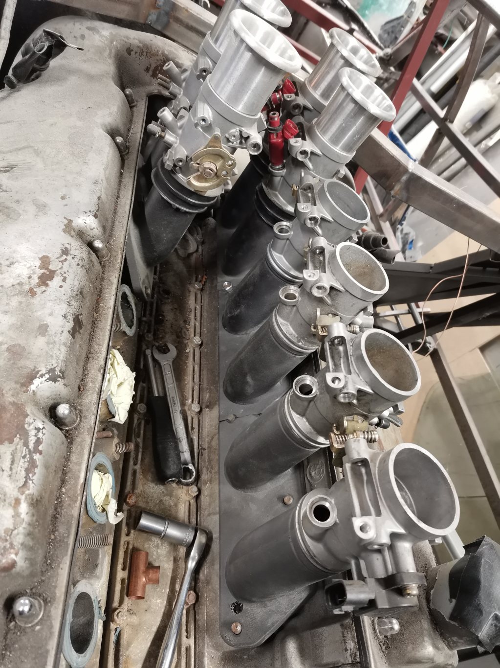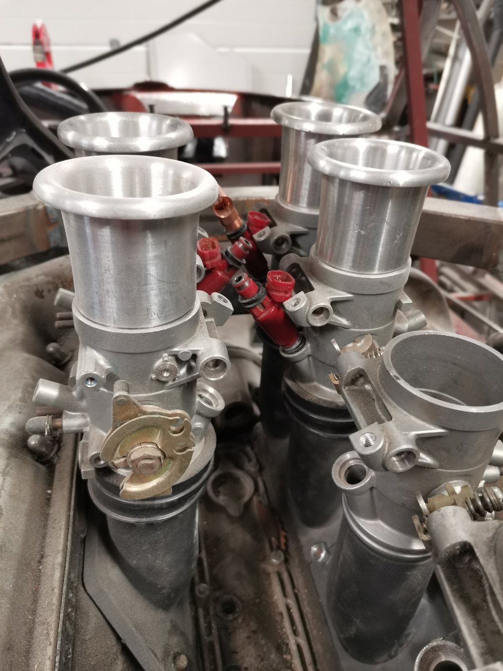 3 D printade insug av Kolfiber/Nylon. Samma material som Mclaren och Lotus använder i sina insug. De kommer i sex delar som matar 2 cylindrar var.
