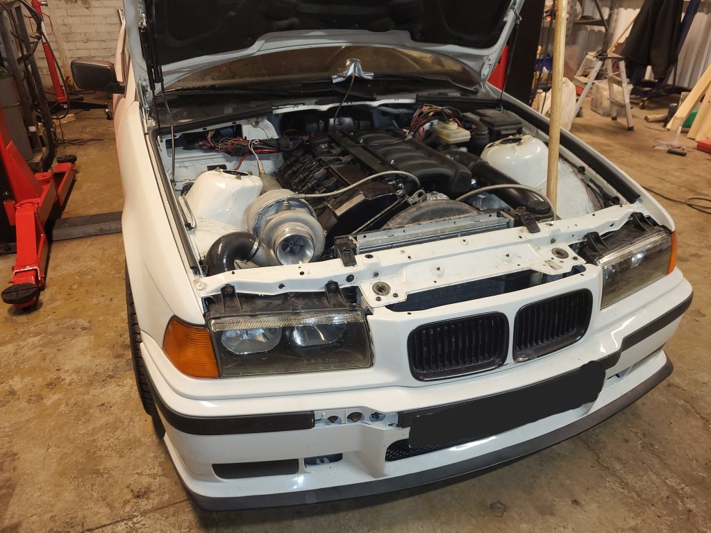 Av olika anledningar så lades arbetet med m43an på is och det slutade istället med att m50in monterades. Efter otroligt mycket strul med både el och kokande kylvatten så verkar det äntligen fungera. Nu väntar bromsning av motor, byte av bakvagn, uppdateringar av bussningar med mera.