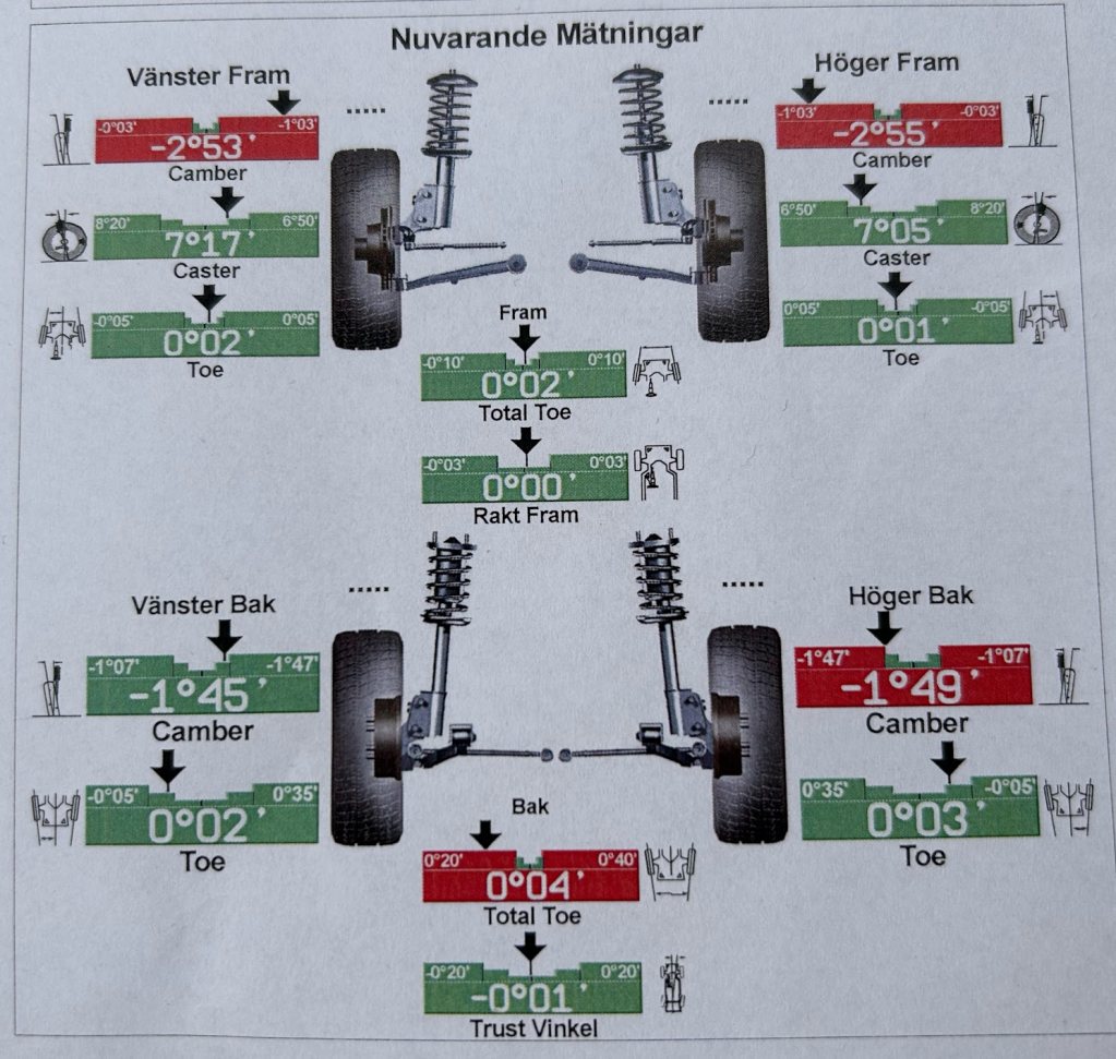 Hjulinställning igen bokad på onsdag och tar åter igen feedback.