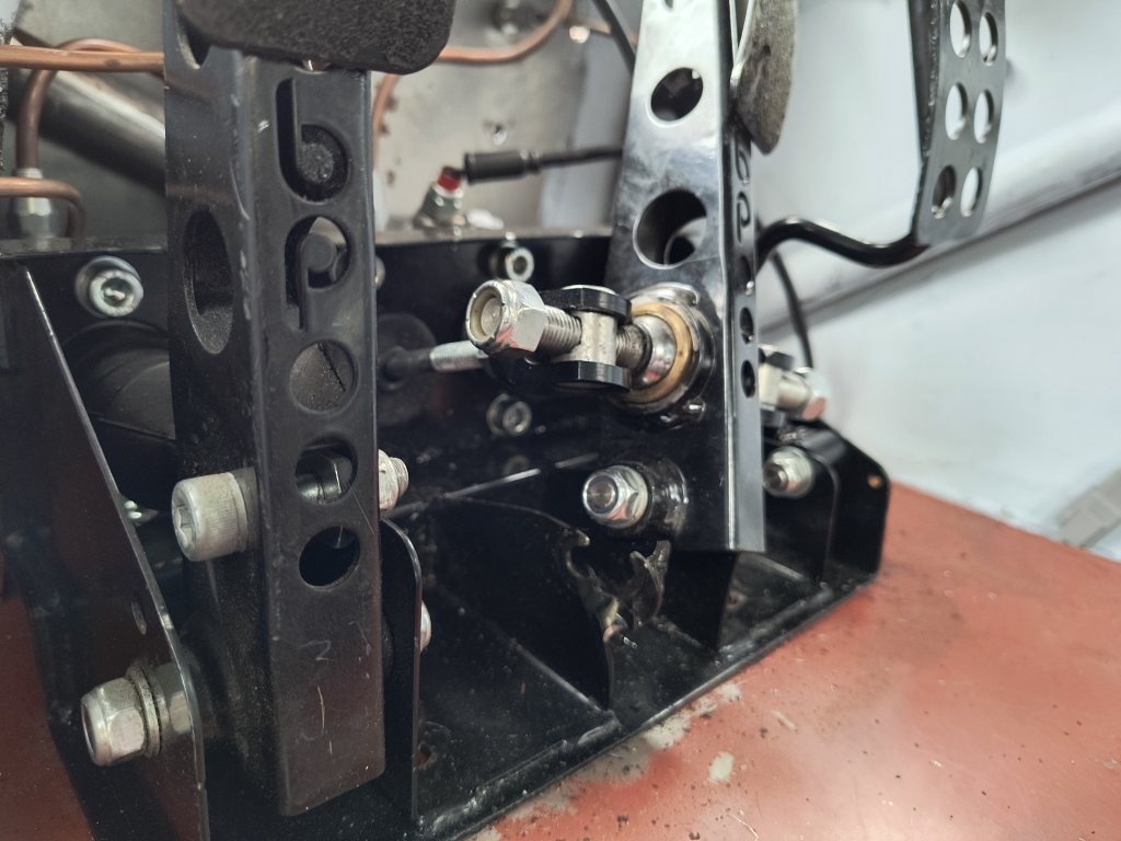 Oljepumpsmodifieringen har jag visat, men jag landade i en till förändring för mer fotutrymme. Istället för att försöka bygga om det existerande pedalstället, köpte jag ett OBP-ställ som oväntat nog fick plats i bilen.