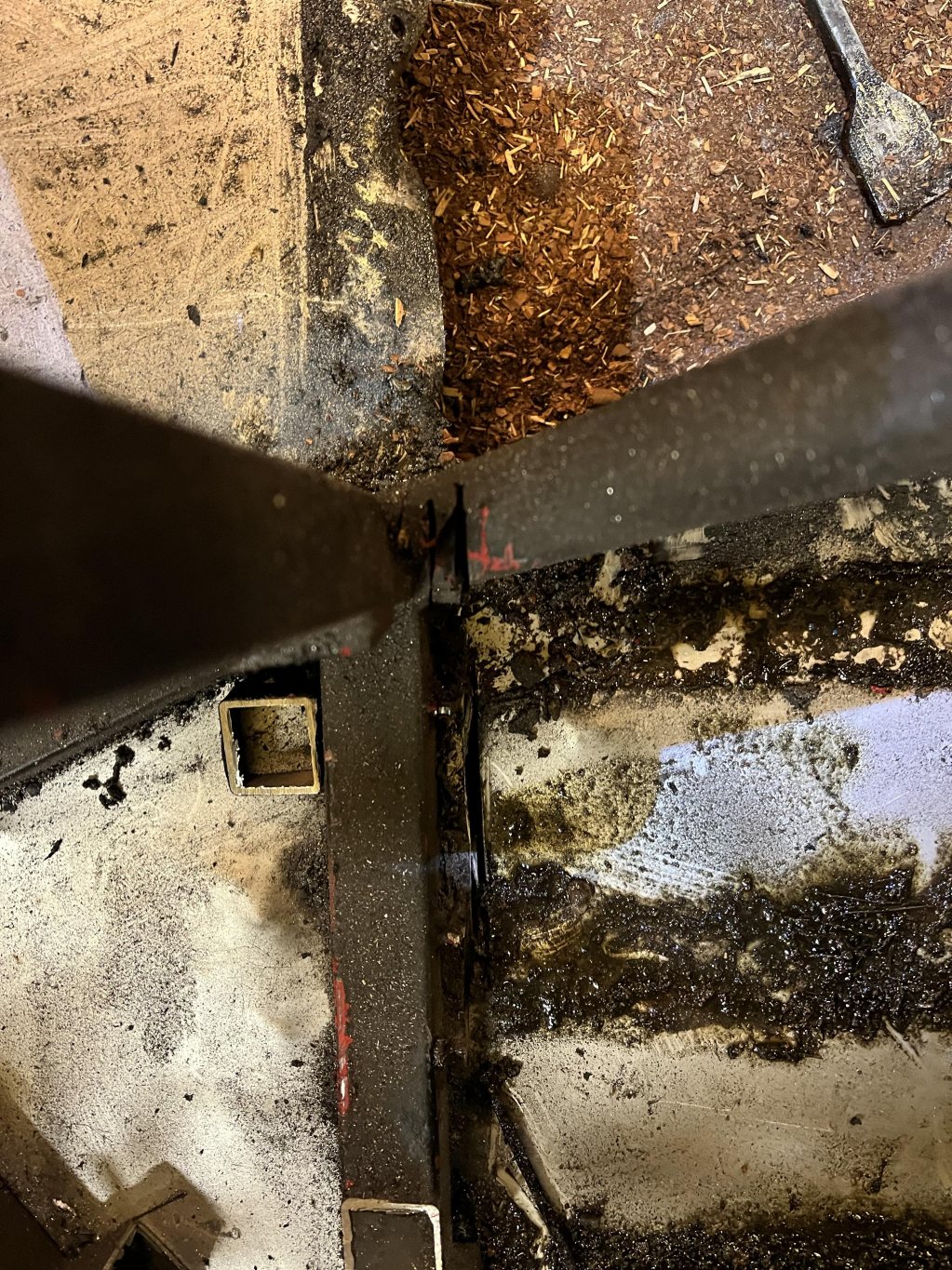 Det där är inte optimalt ... Dessutom gör lösningen för framkant av föraröppningen att jag inte kan få mina knän förbi rören utan att leka masken. Det undre röret här, som lagringen av rattstången sitter på: