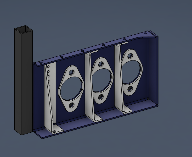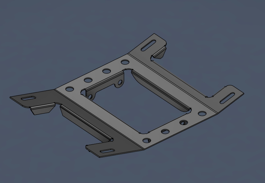 "That's weight saving" ... Aja, det får bytas ut, helt enkelt. Den andra modifieringen var att göra en bakre vägg för att styva upp pedalstället. Det är svårt att hitta riktigt bra lösningar, men jag tog de rör som ligger närmast (mörkgrå på skärmdumparna), och försökte göra en bockad plåtkonstruktion som ändå binder samman dessa delar utan att bli alltför bulkig eller krånglig att montera/arbeta runt. Lösningen är CAD-modellerade och alla plåtar (blått och vitt) är beställda.