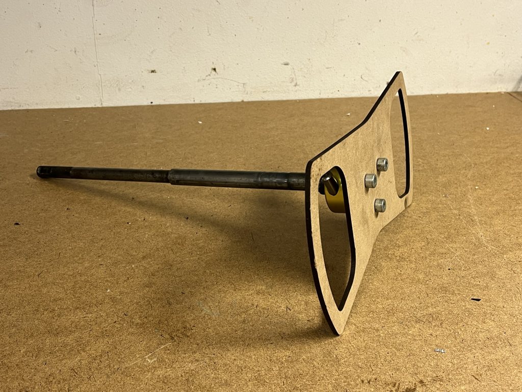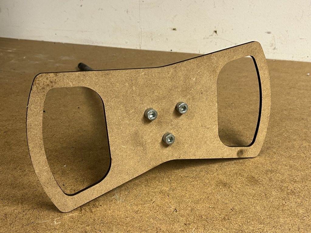 Det ena greppet kändes bra, också med handskar, så jag tog hjälp av jobbets laserskärare och skar ut en version i MDF för att kunna testa på plats i bilen: