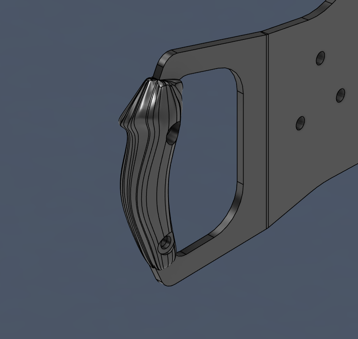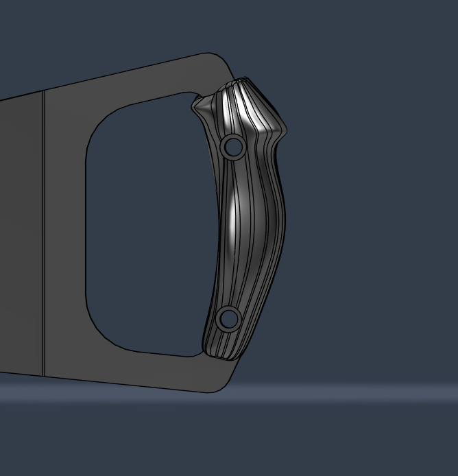 Vad gäller greppen så är planen att 3D-skriva dem, så fort jag har fått någonting som är okej. Än så länge är det mycket Work in Progress här, eftersom det var ett tag sedan jag satt med subdivisionmodellering.