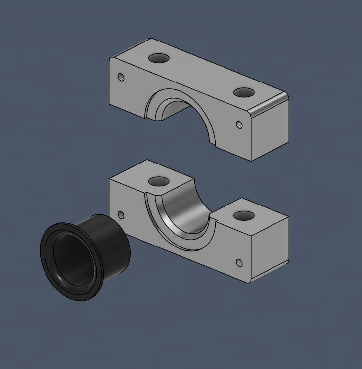 Jag har också ritat upp ett lagerhus för rattstången, en ganska enkel design men tänkt att kunna hålla ett glidlager på plats. Skulle jag hellre ha ett nållager pressat på plats? Absolut, men jag behöver nog få bättre yta och tolerans på rattstången för att kunna göra det med någon säkerhet.